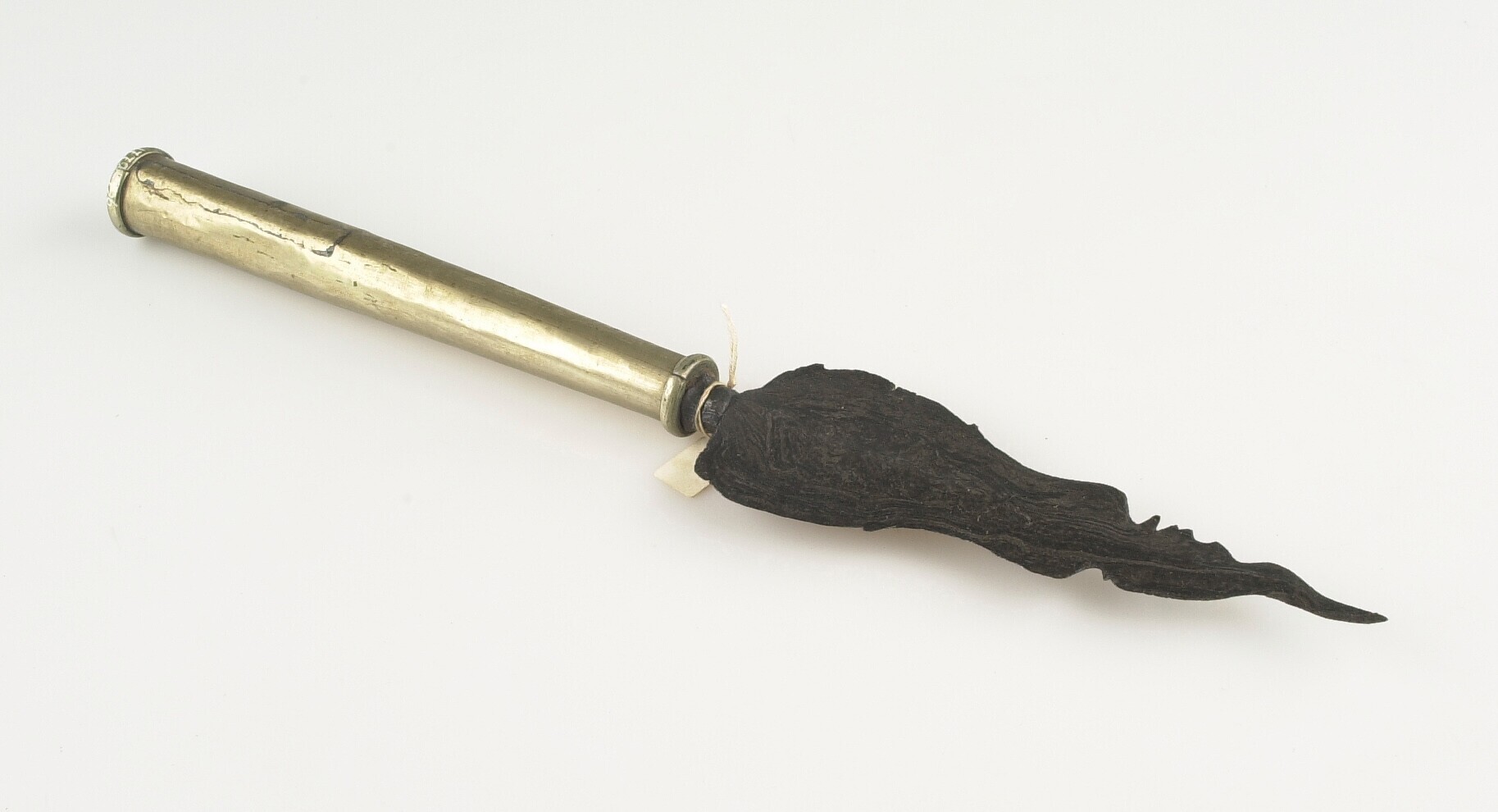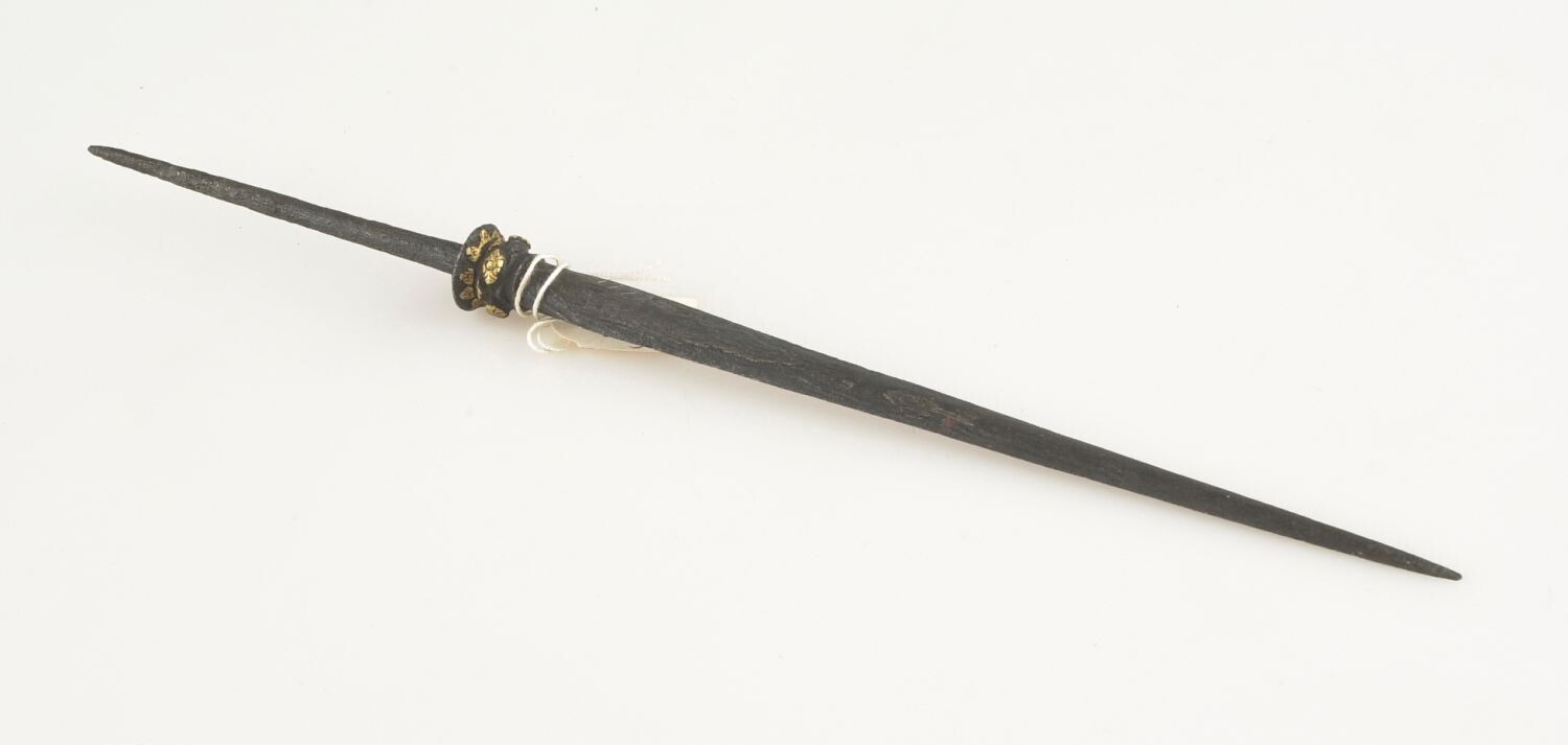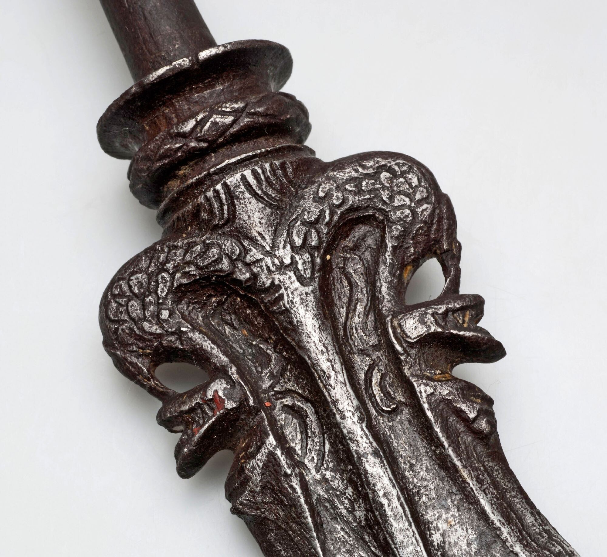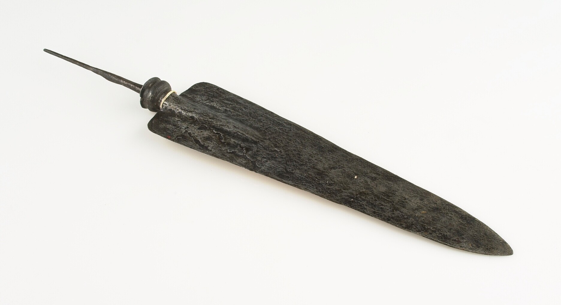 IJzeren lanspunt in sterk gestyleerde mensvorm