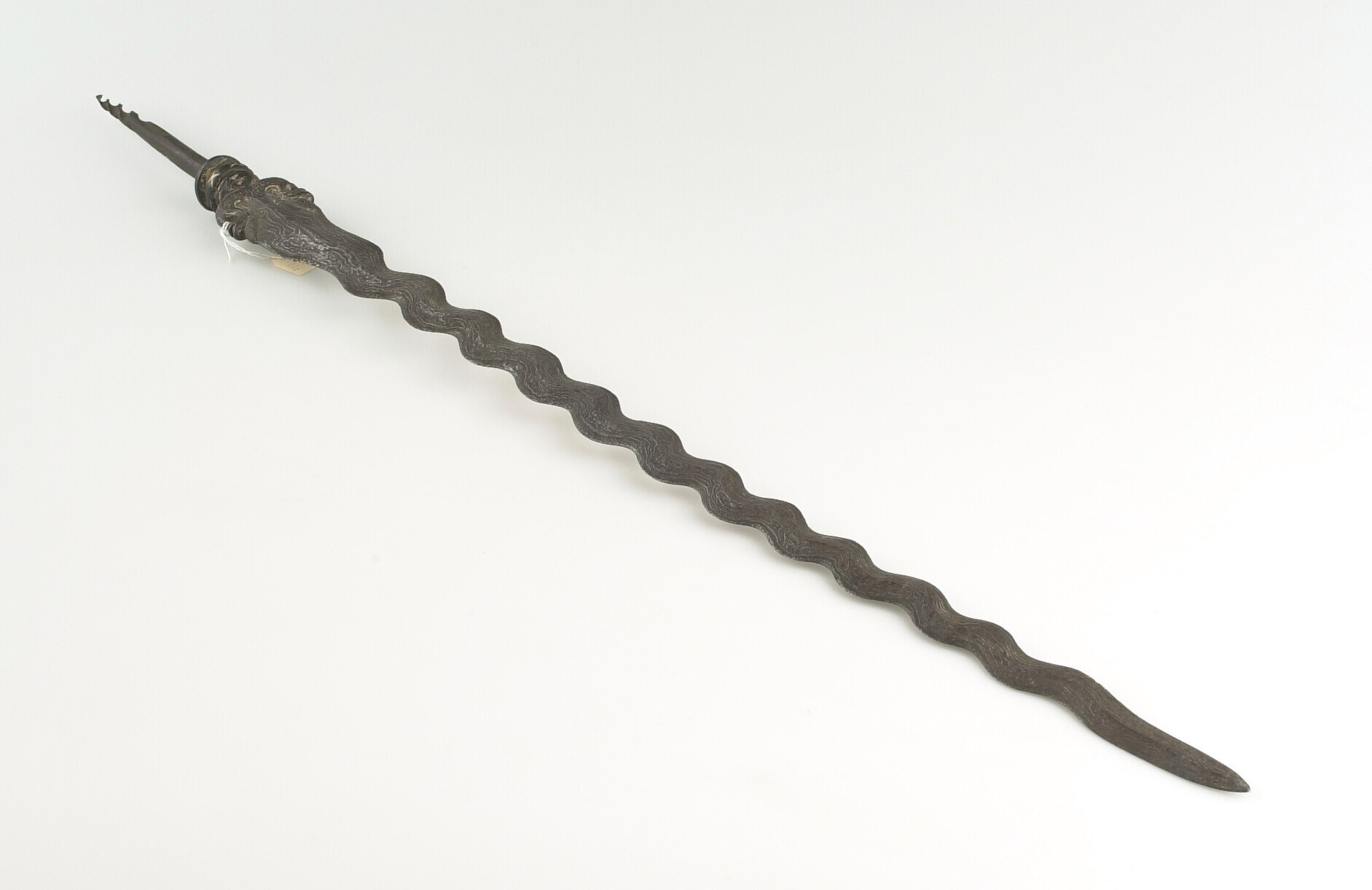 Kris met gegolfd lemmet en hoornen, met snijwerk ver...