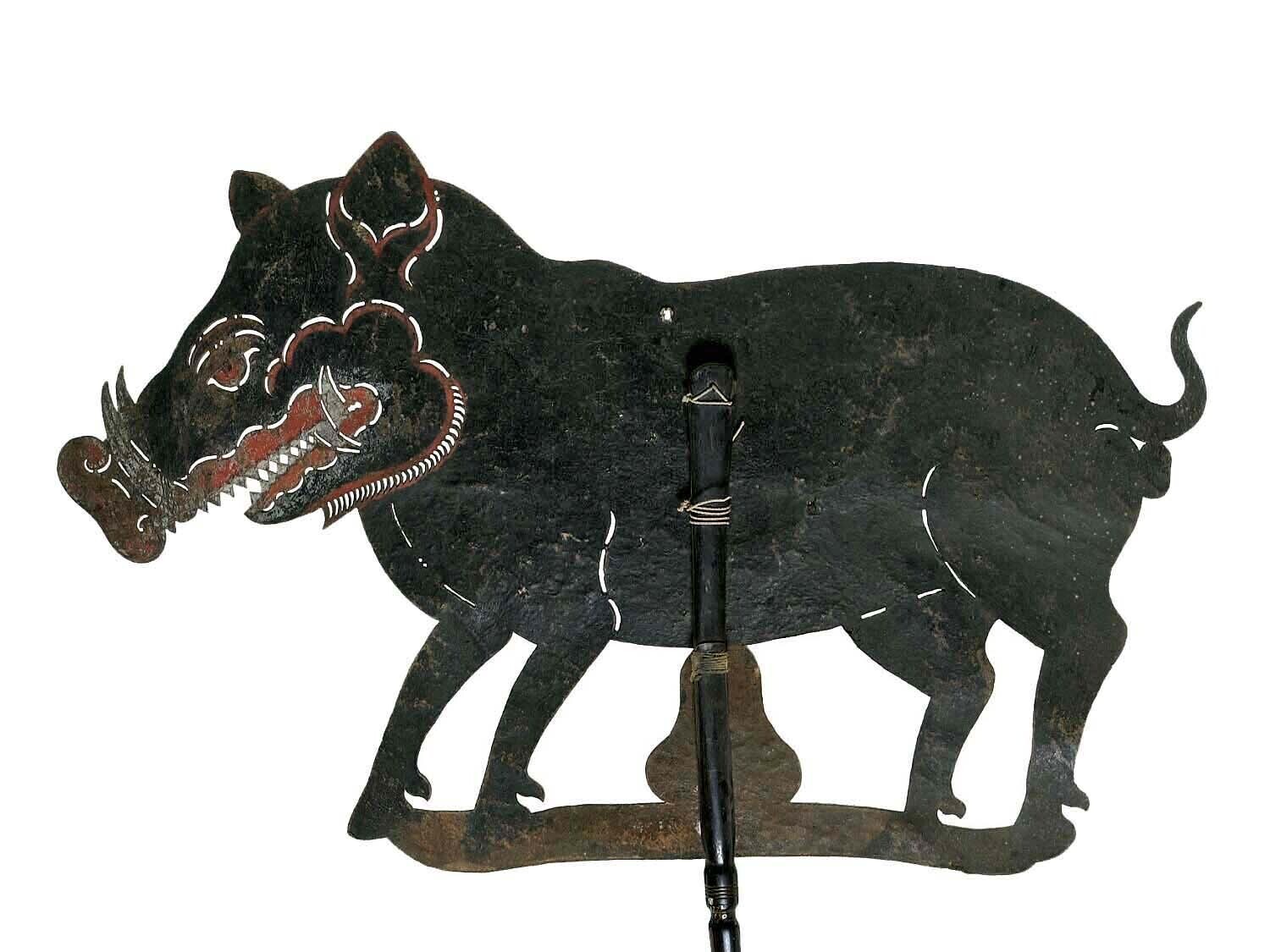 Wajangfiguur van karbouwenhuid, een everzwijn voorst...