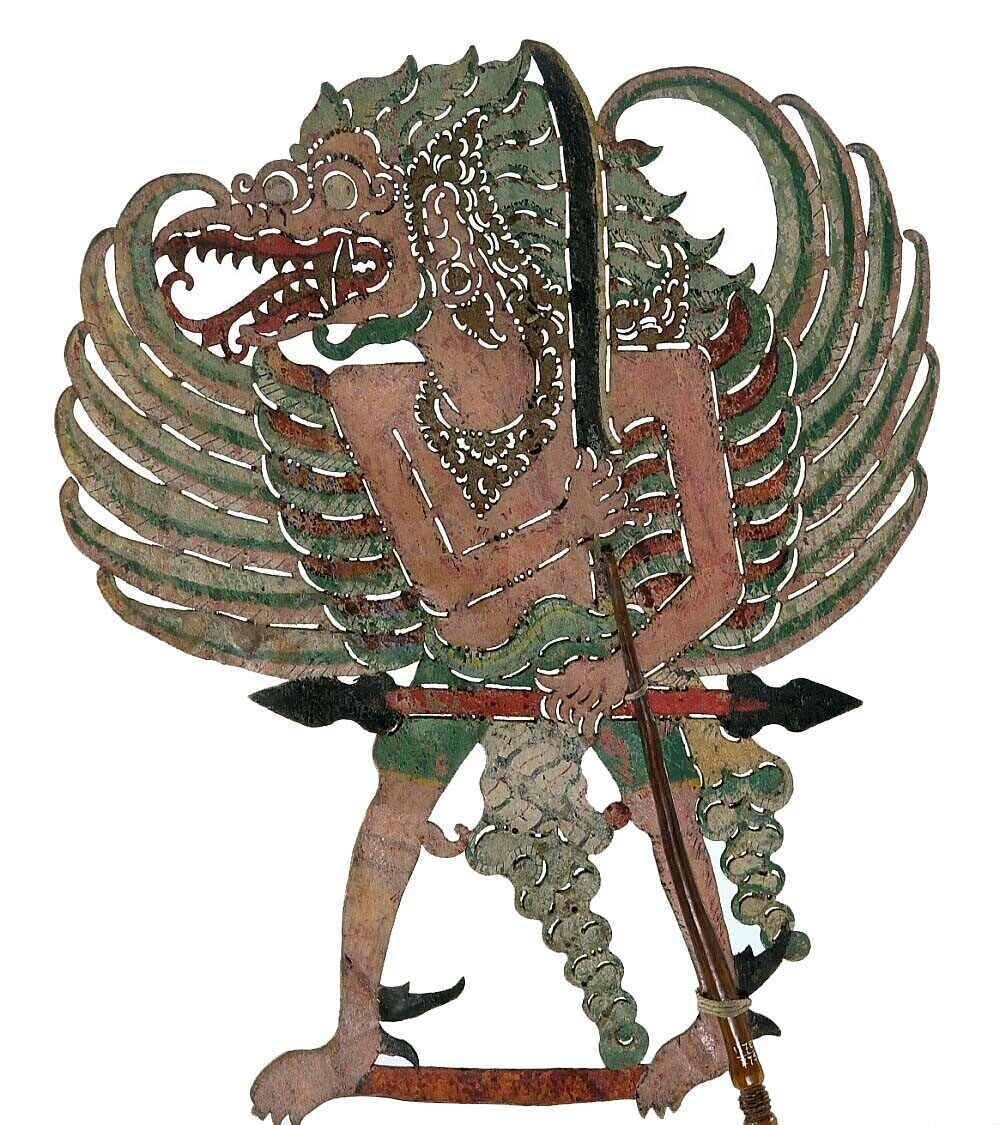 Wajangfiguur van karbouwenhuid, de mythische vogel G...