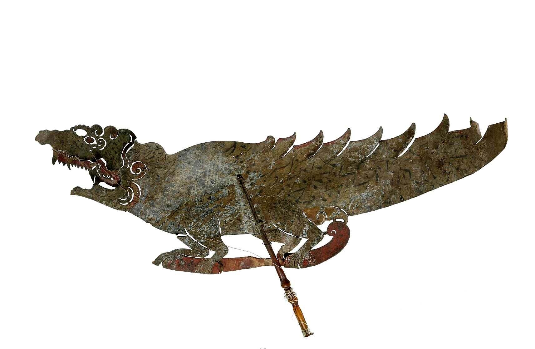 Wajangfiguur, een draak met vissenlichaam voorstellend