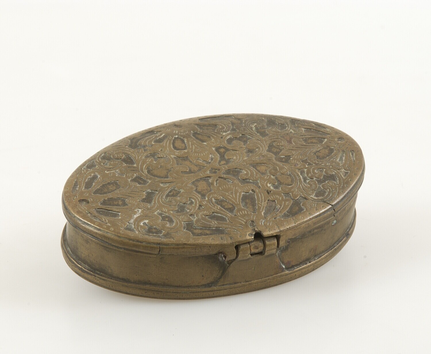 Rond messingen doosje, vermoedelijk om sieraden in o...