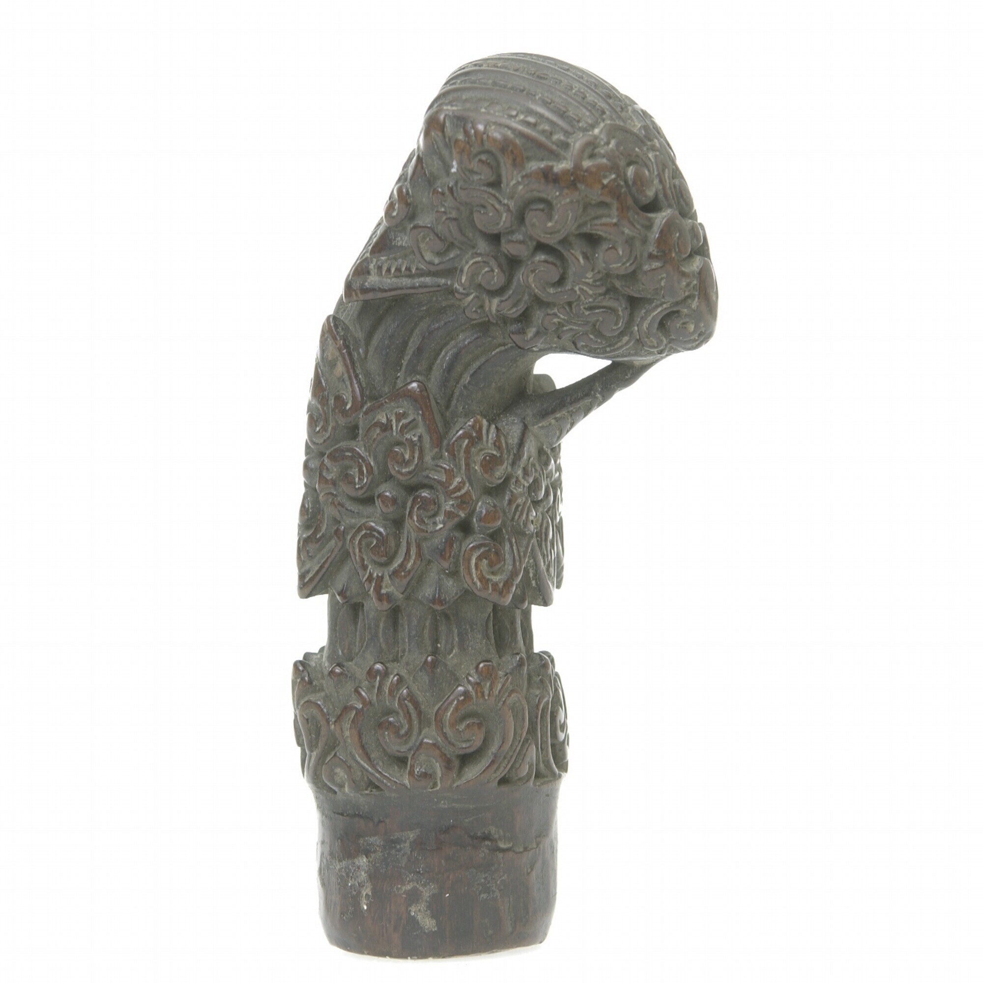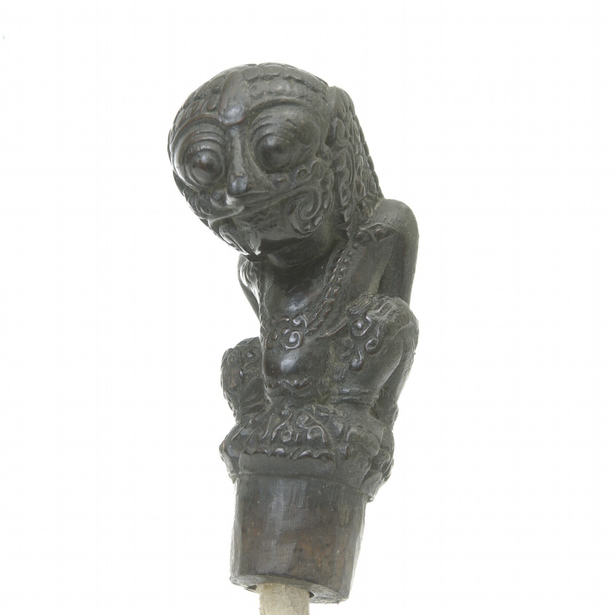 Houten krisgreep in de vorm van een hurkende Rakshas...