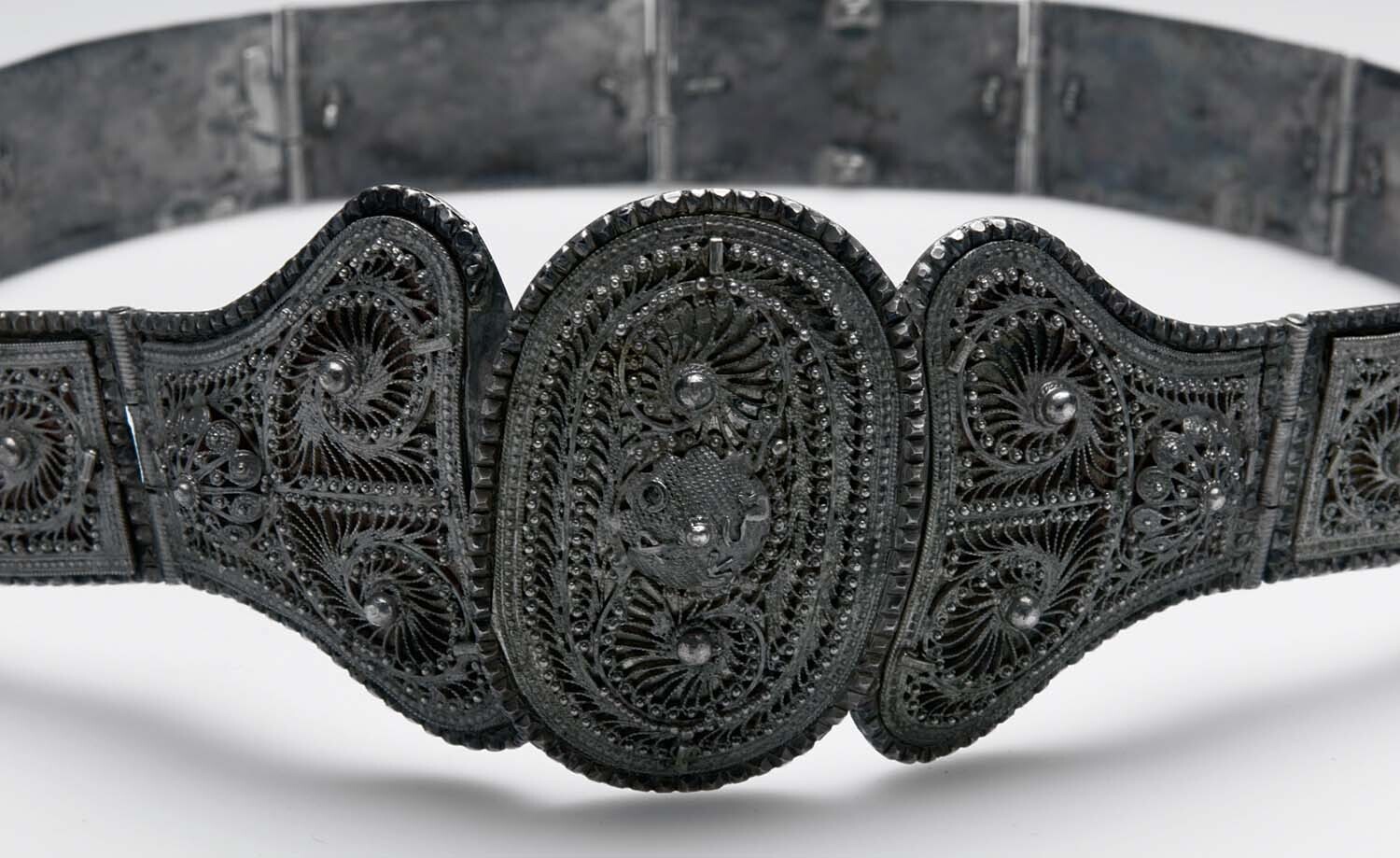 Zilveren riem, versierd met medaillon en a-jour moti...