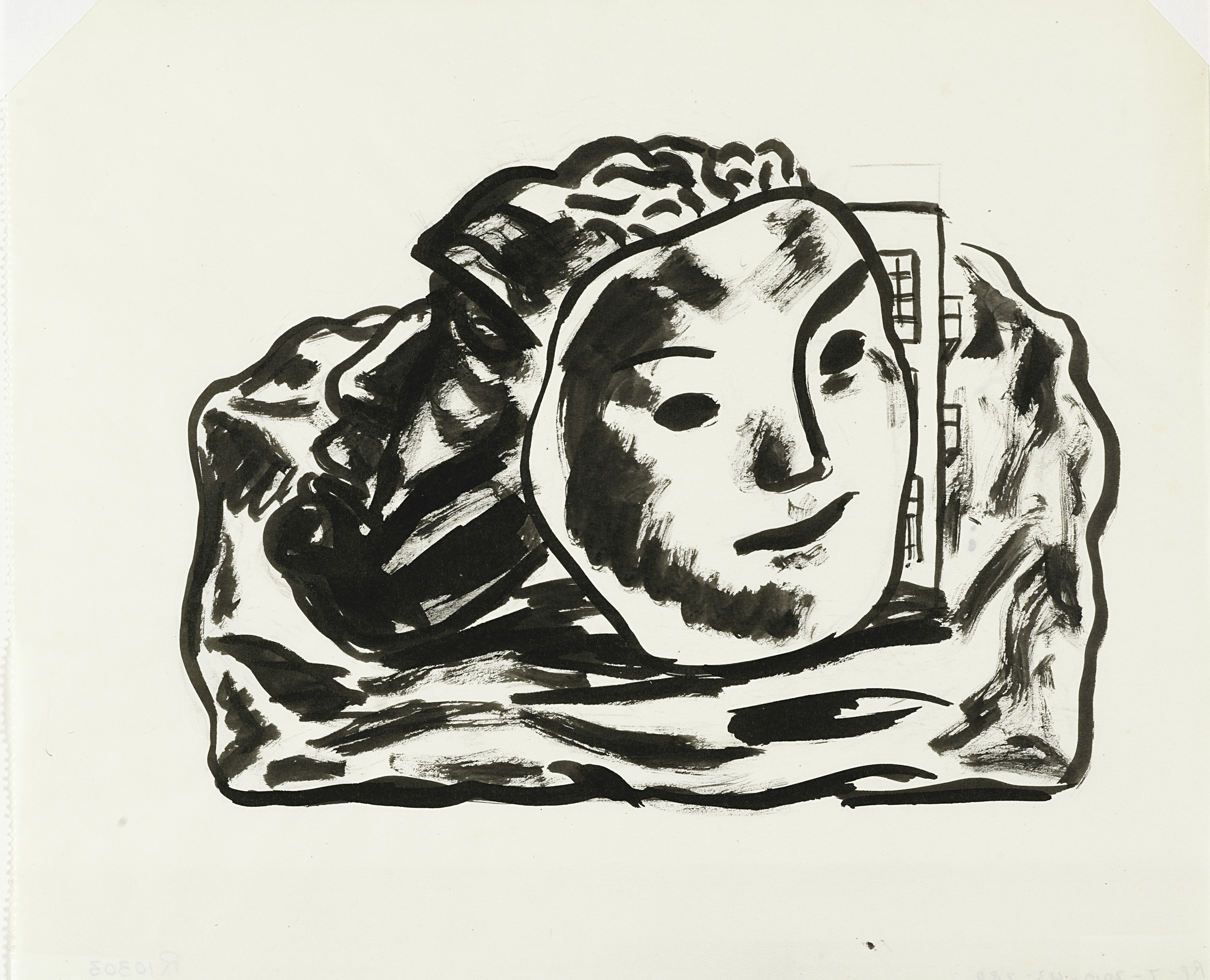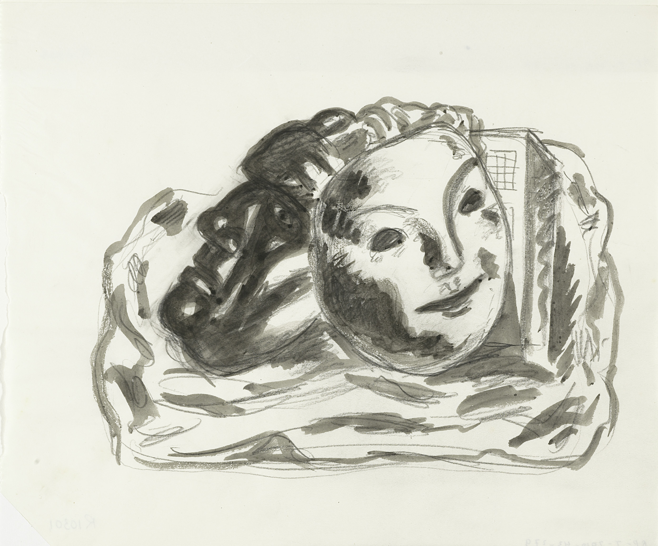 Kop van vrouw met gesloten ogen (schets)