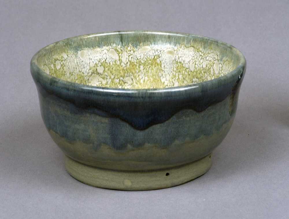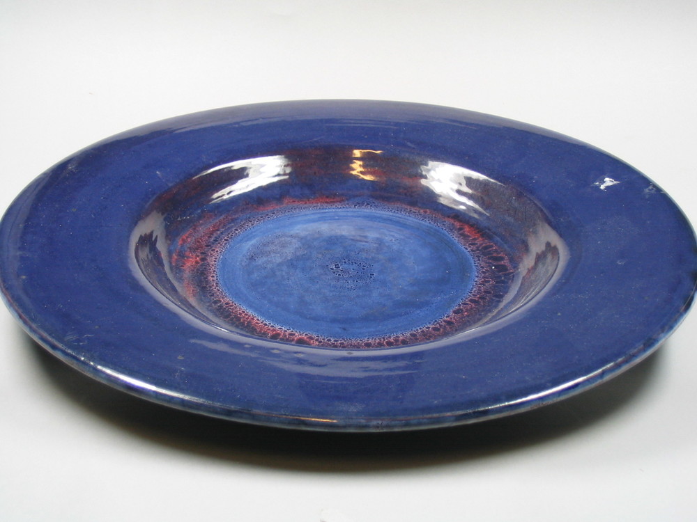 bord van keramiek, donkerblauw met rozerood vlekkenp...