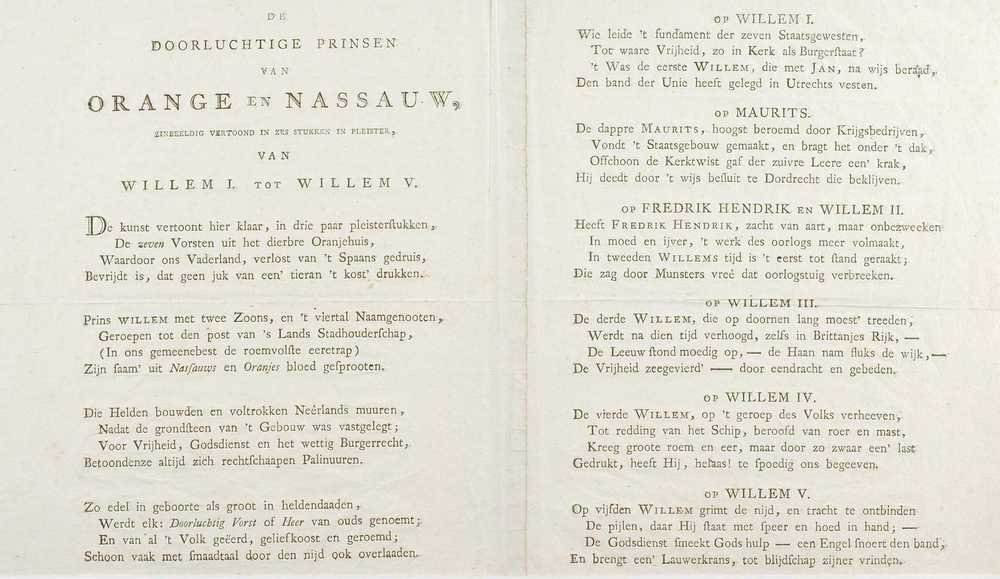 Gedicht op de Prinsen van Oranje-Nassau Willem I tot...