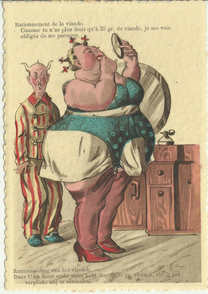 Briefkaart met foto van een spittende man.