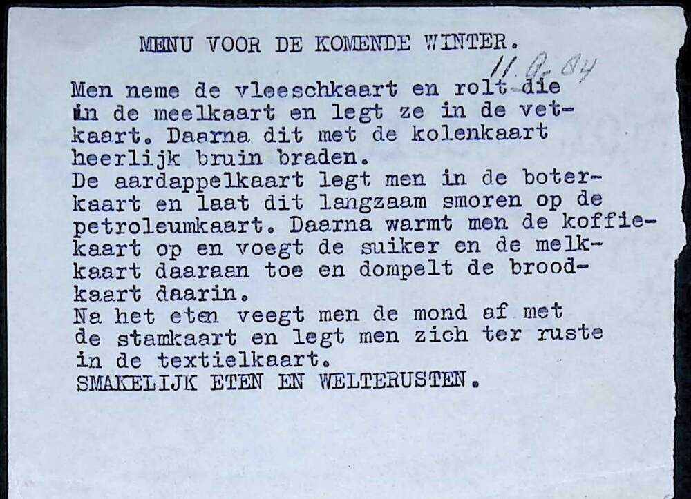 Menukaart voor de komende winter.