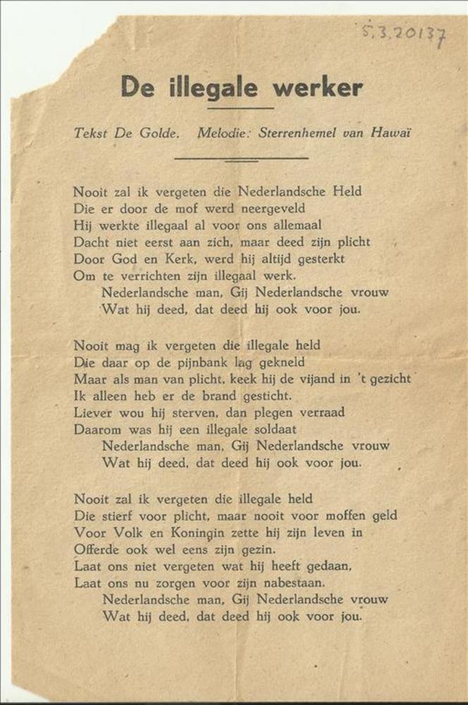 De illegale werker, tekst: De Golde, melodie: Sterre...