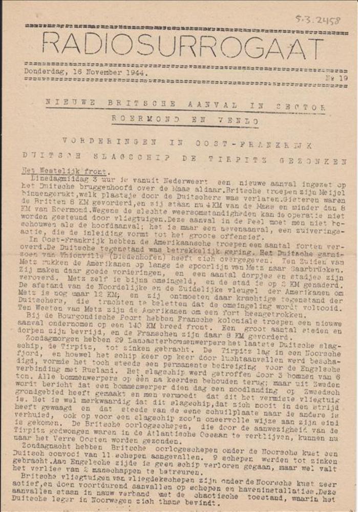 Radio Surrogaat, Donderdag 16 November 1944, No 19.