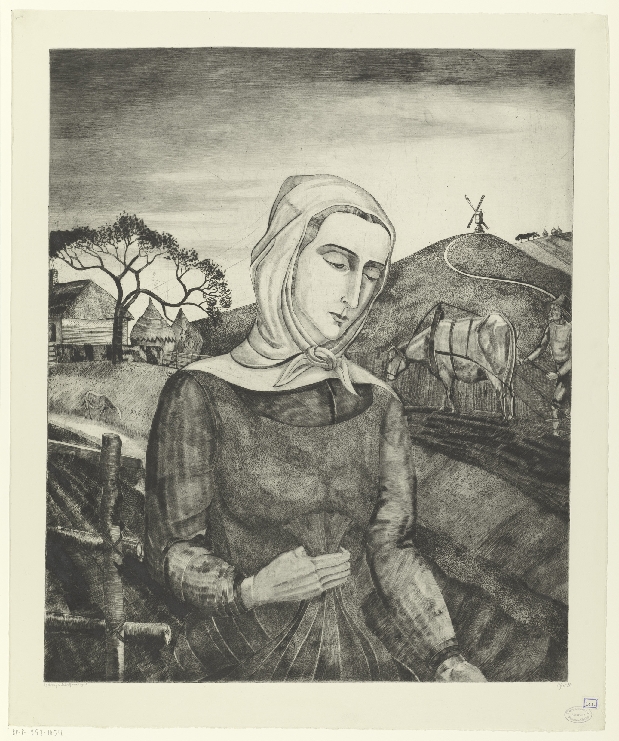 Vlaamse boerin in een heuvellandschap