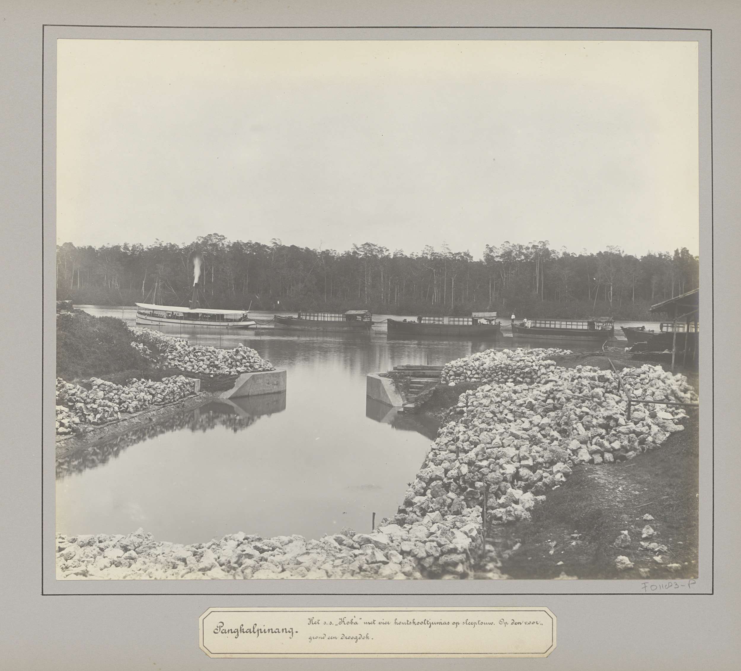 Stoomsleepboot 'Koba' met vier laadbakken te Pangkal...