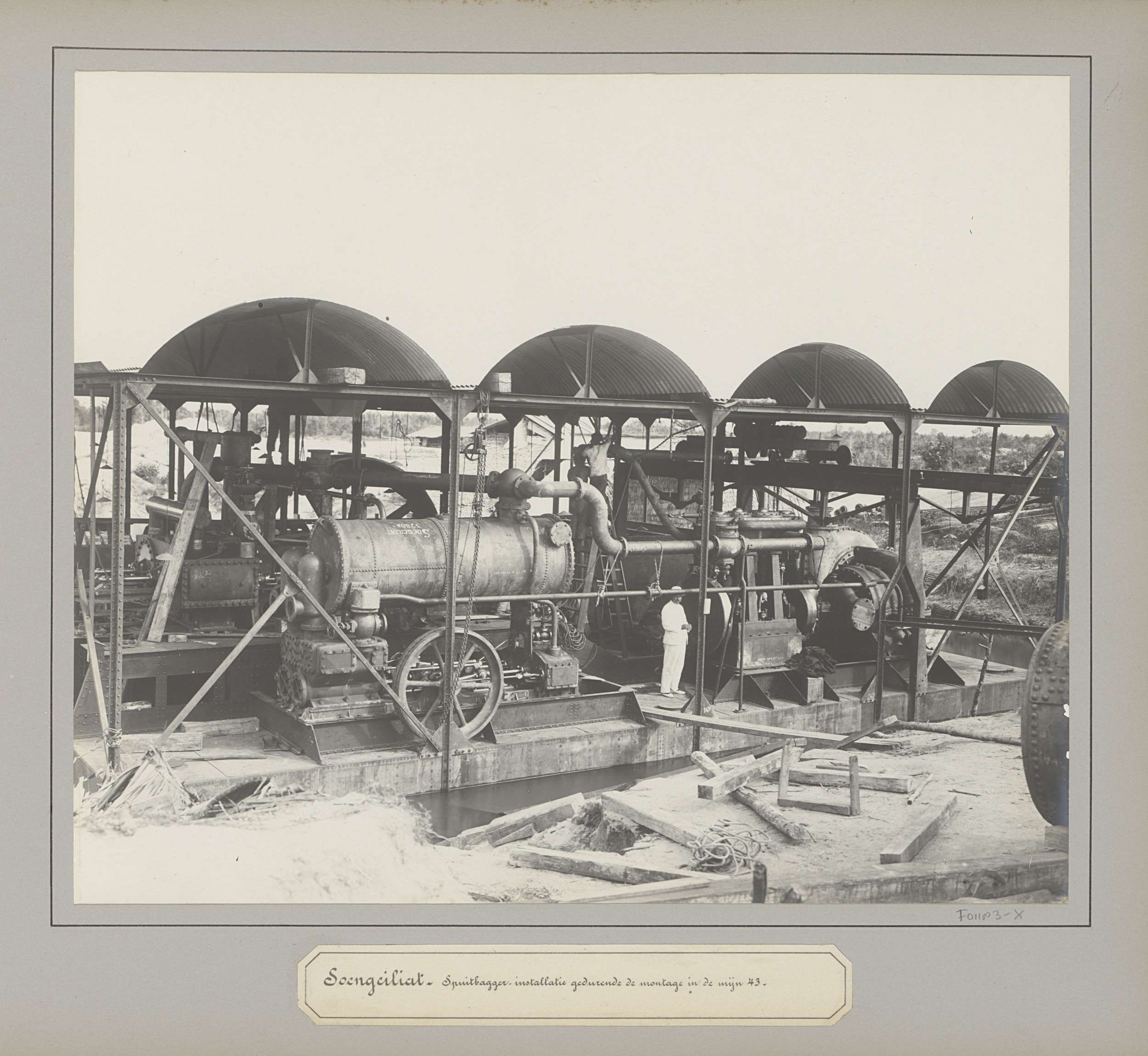 Spuitbaggerinstallatie in aanbouw op een tinondernem...