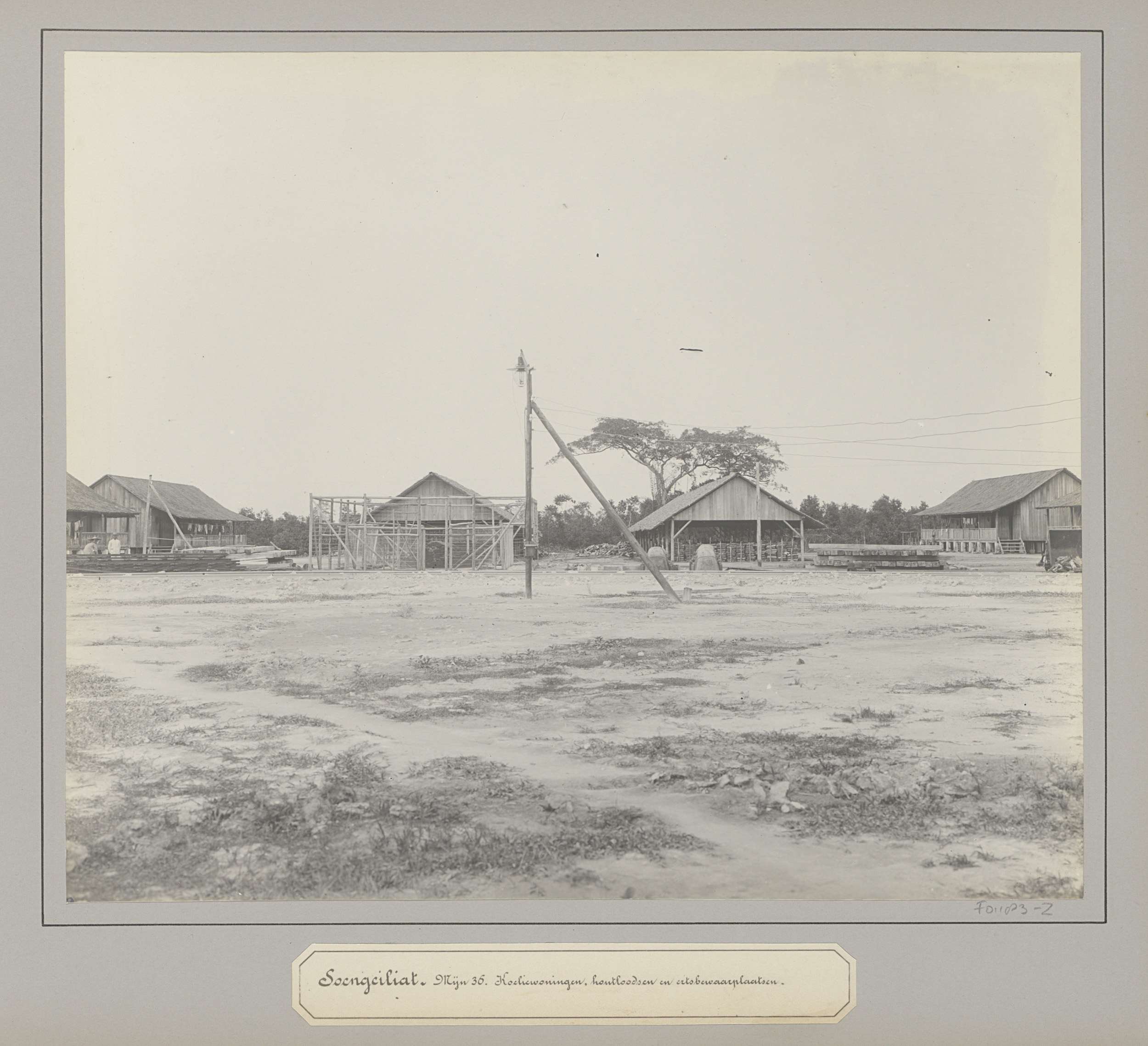 Woningen van Chinese contractarbeiders en loodsen op...