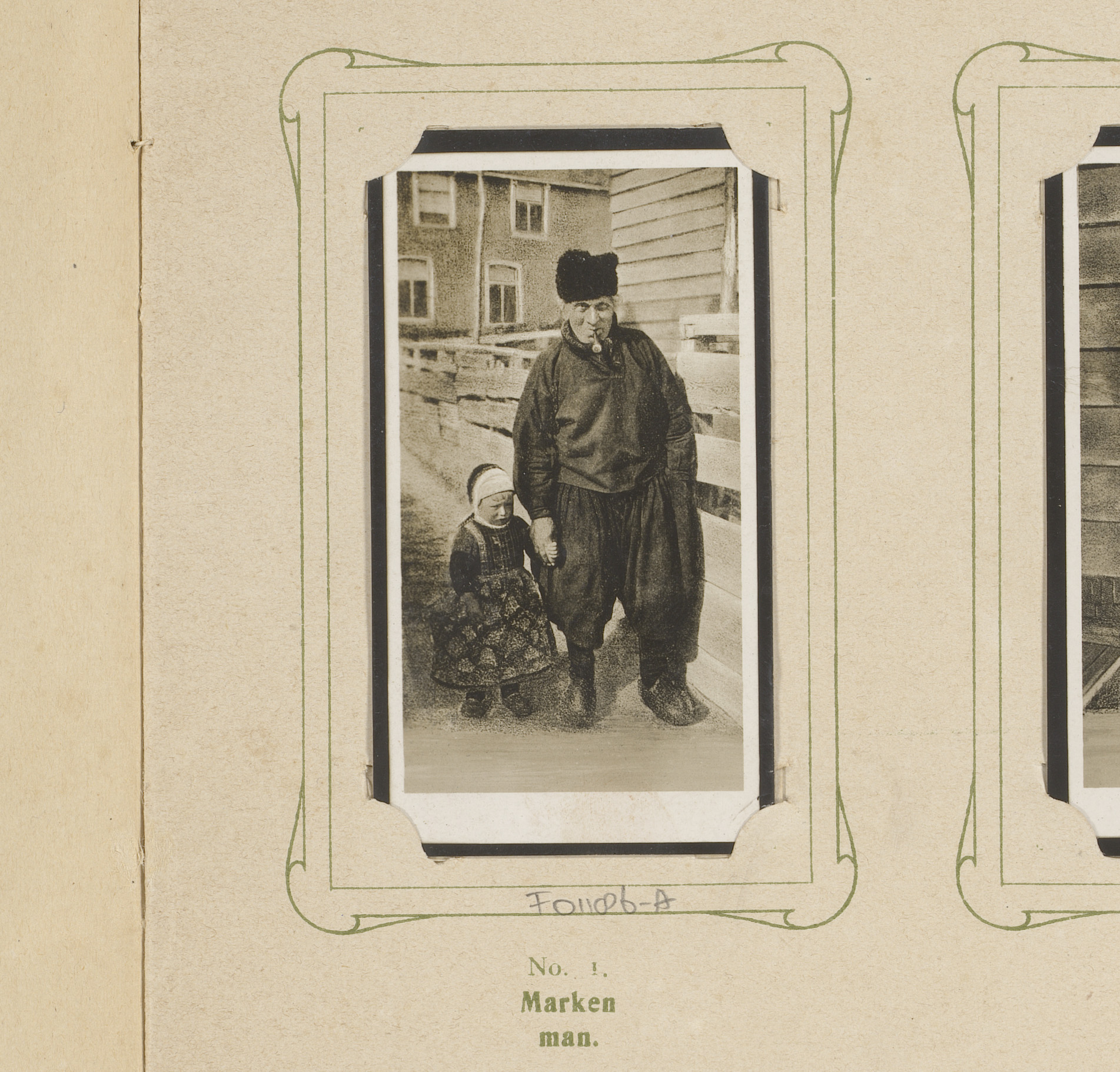 Portret van een man met kind in Hollandse klederdracht