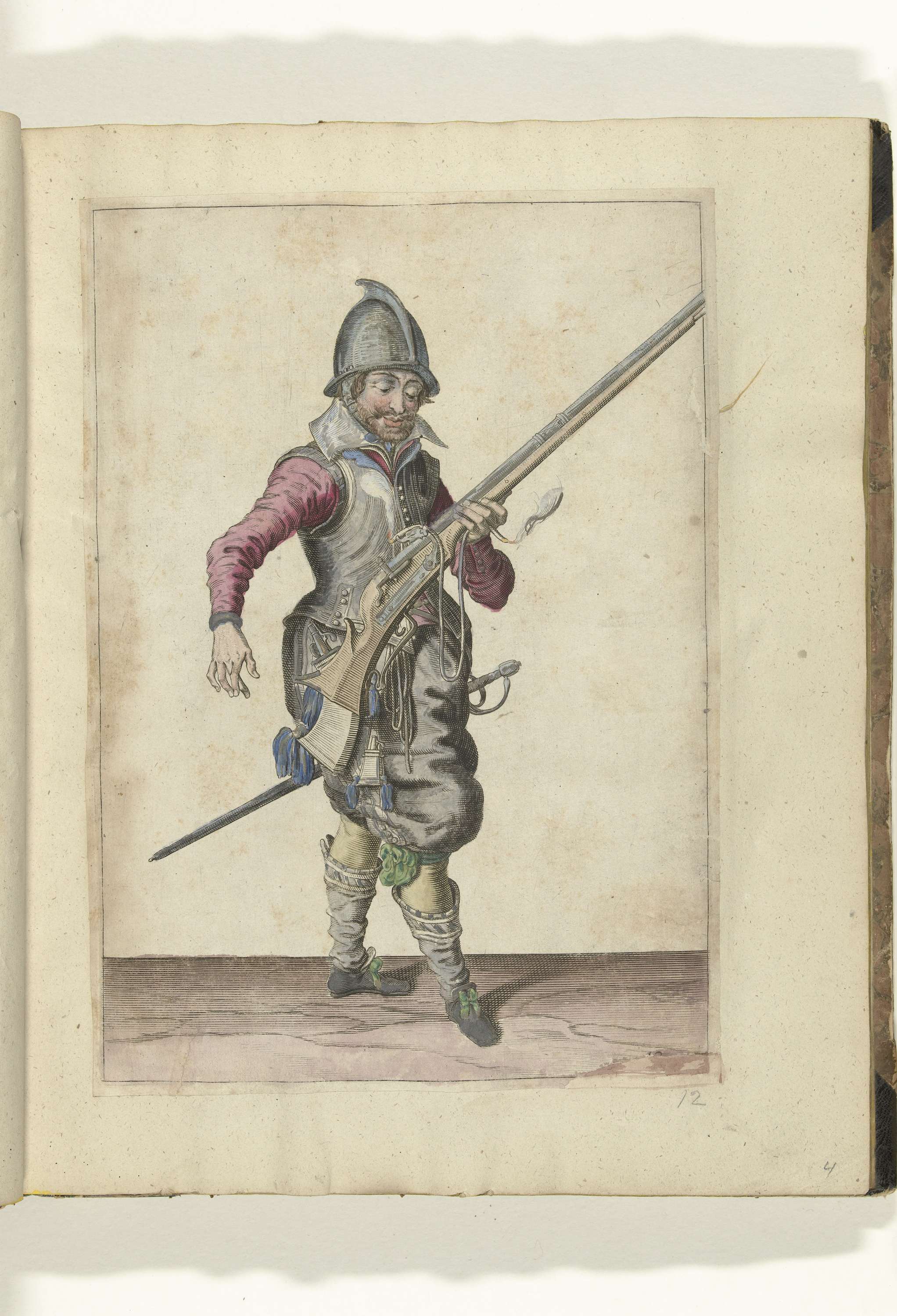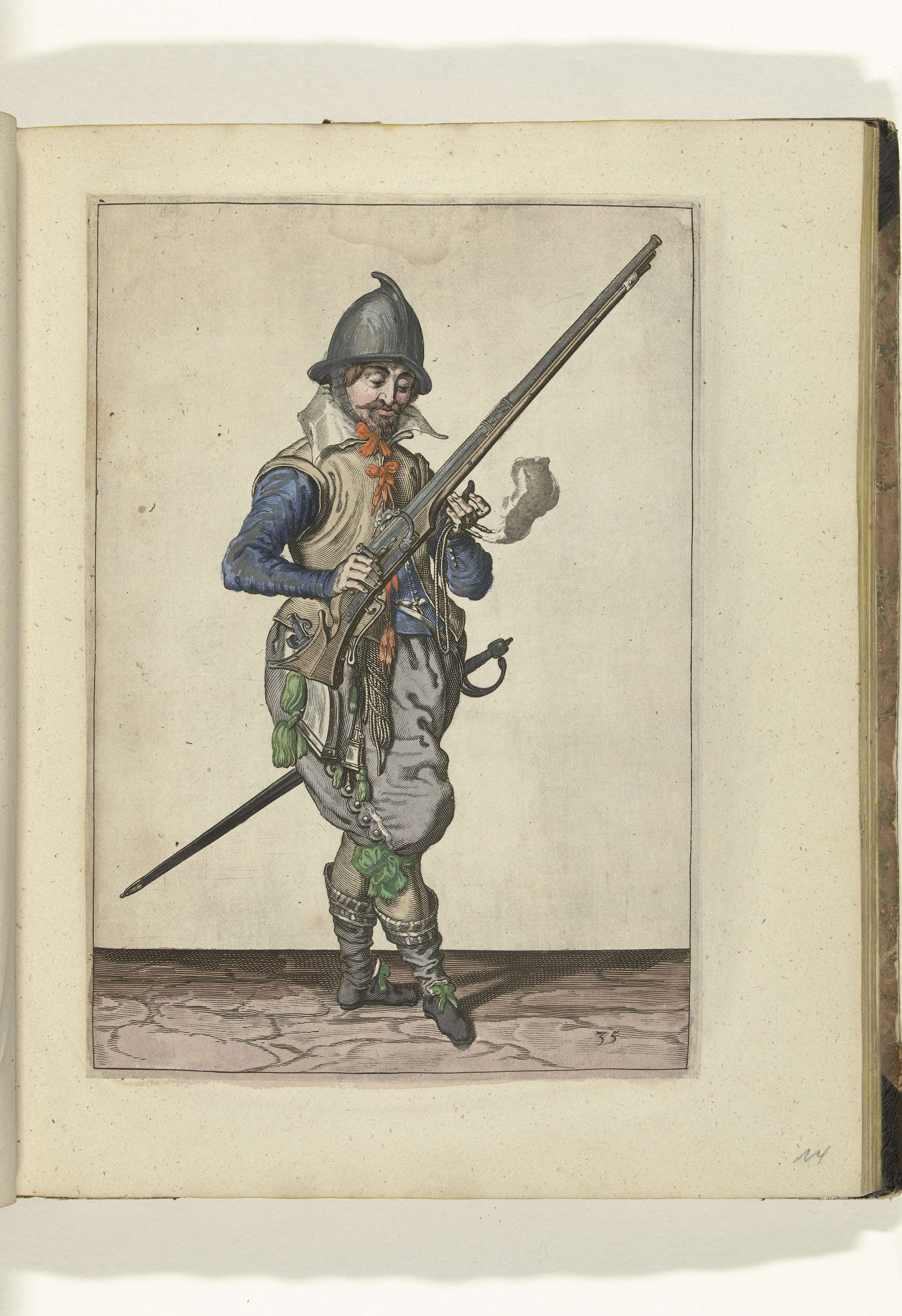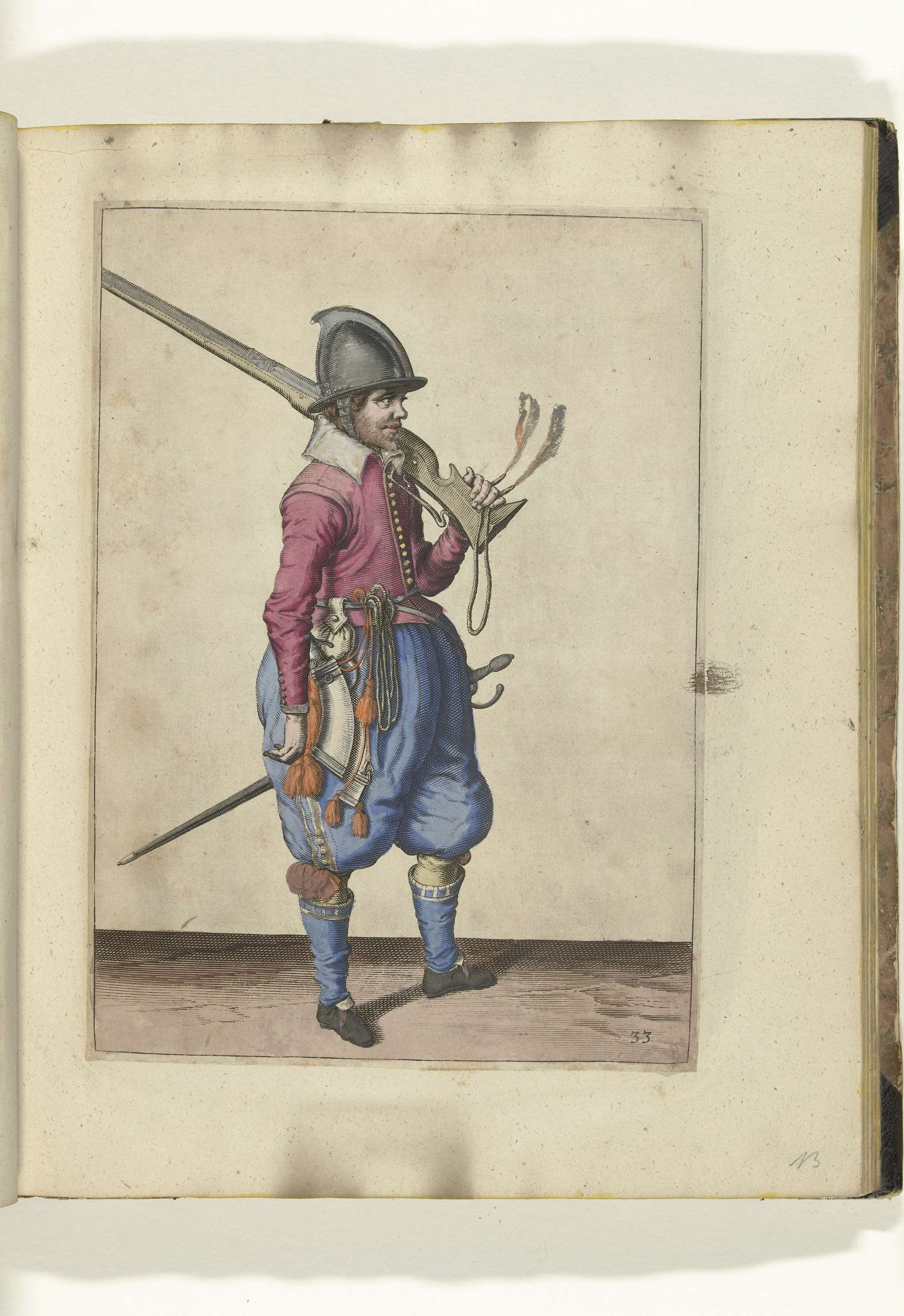 Soldaat met een roer die zijn lont naar zijn mond br...