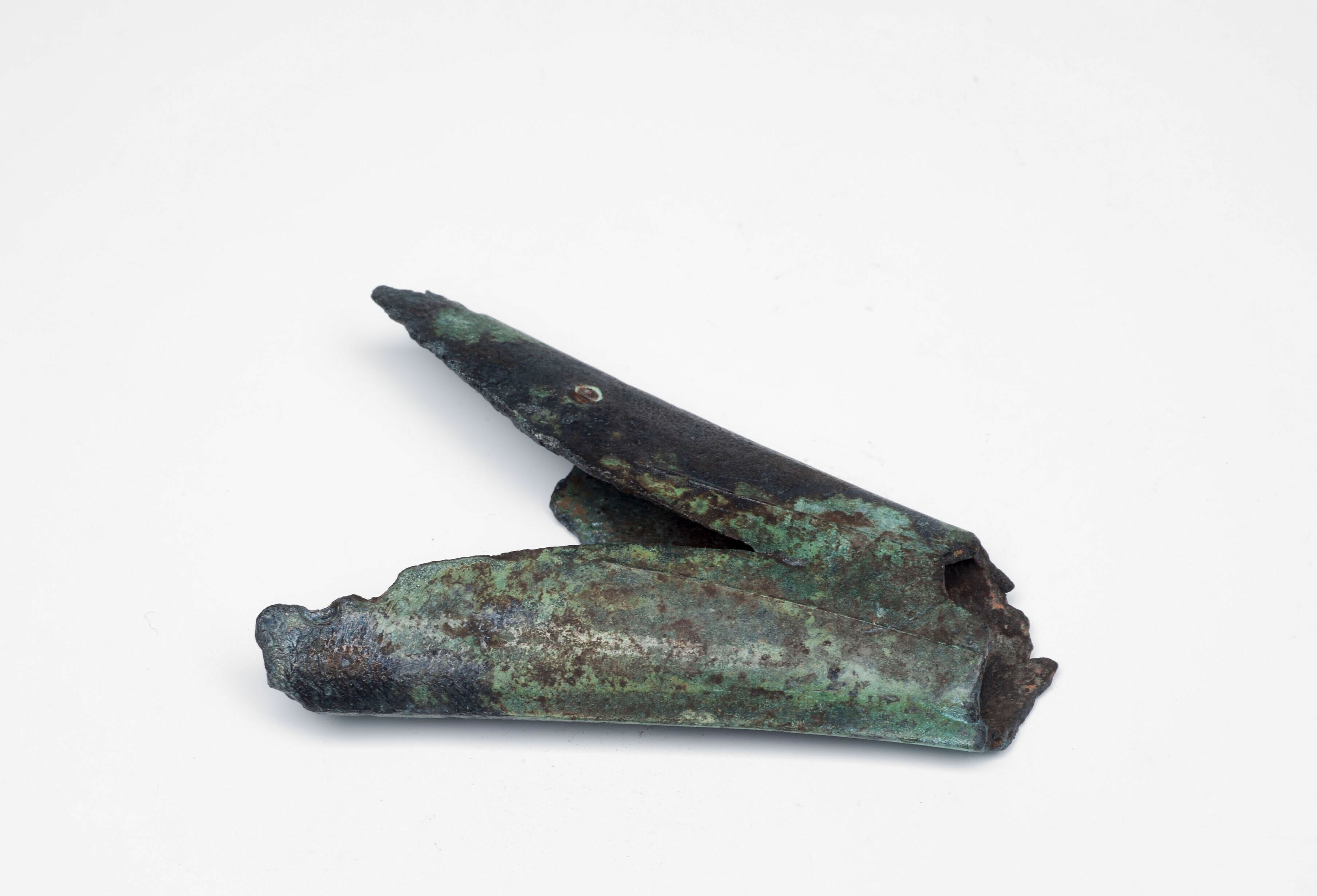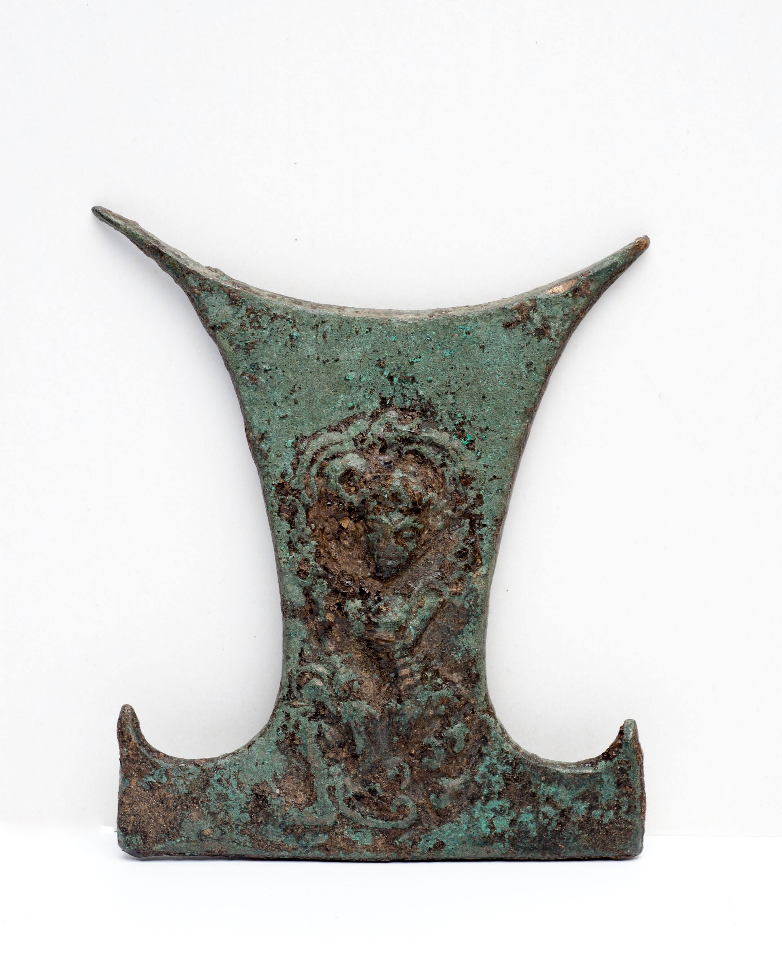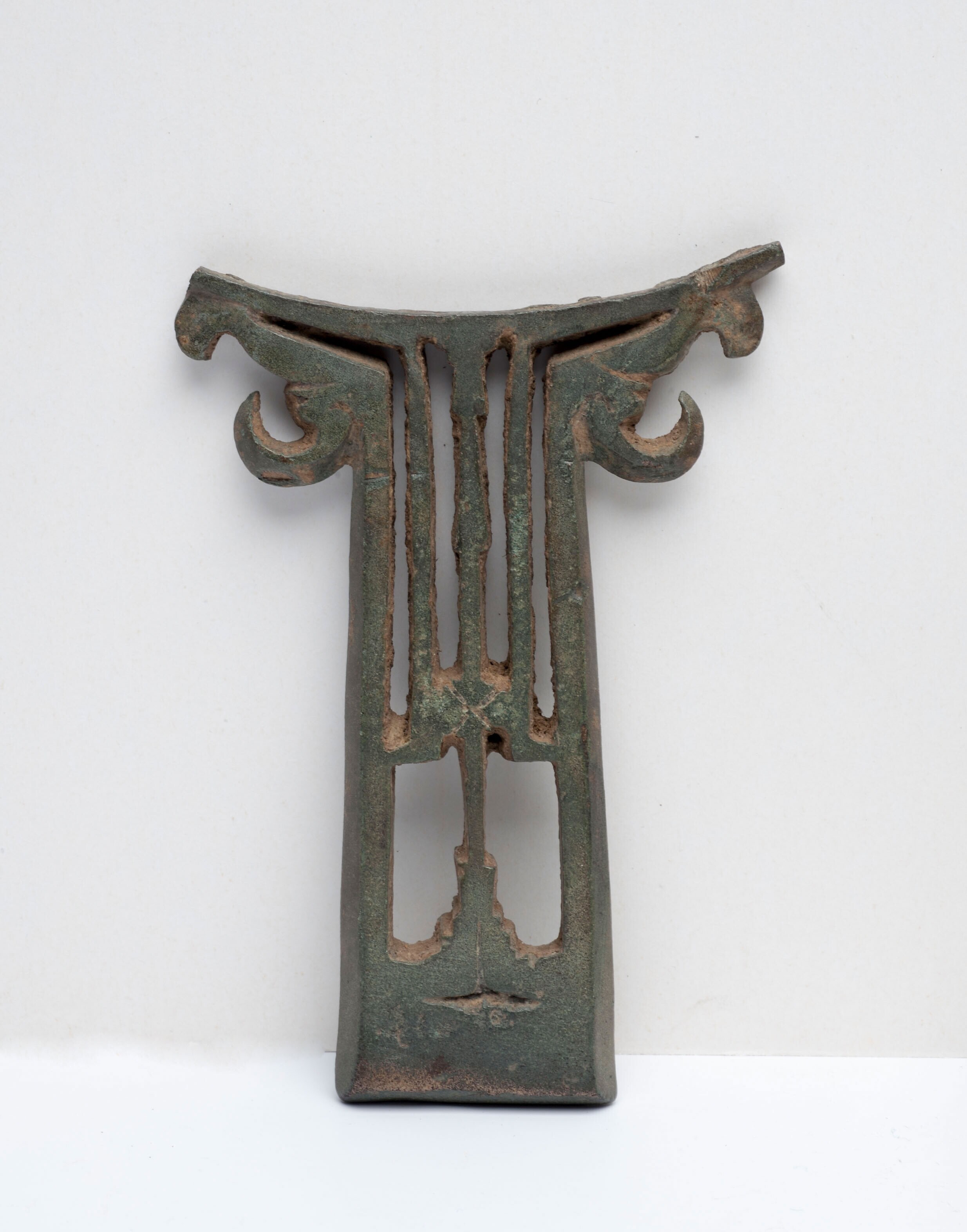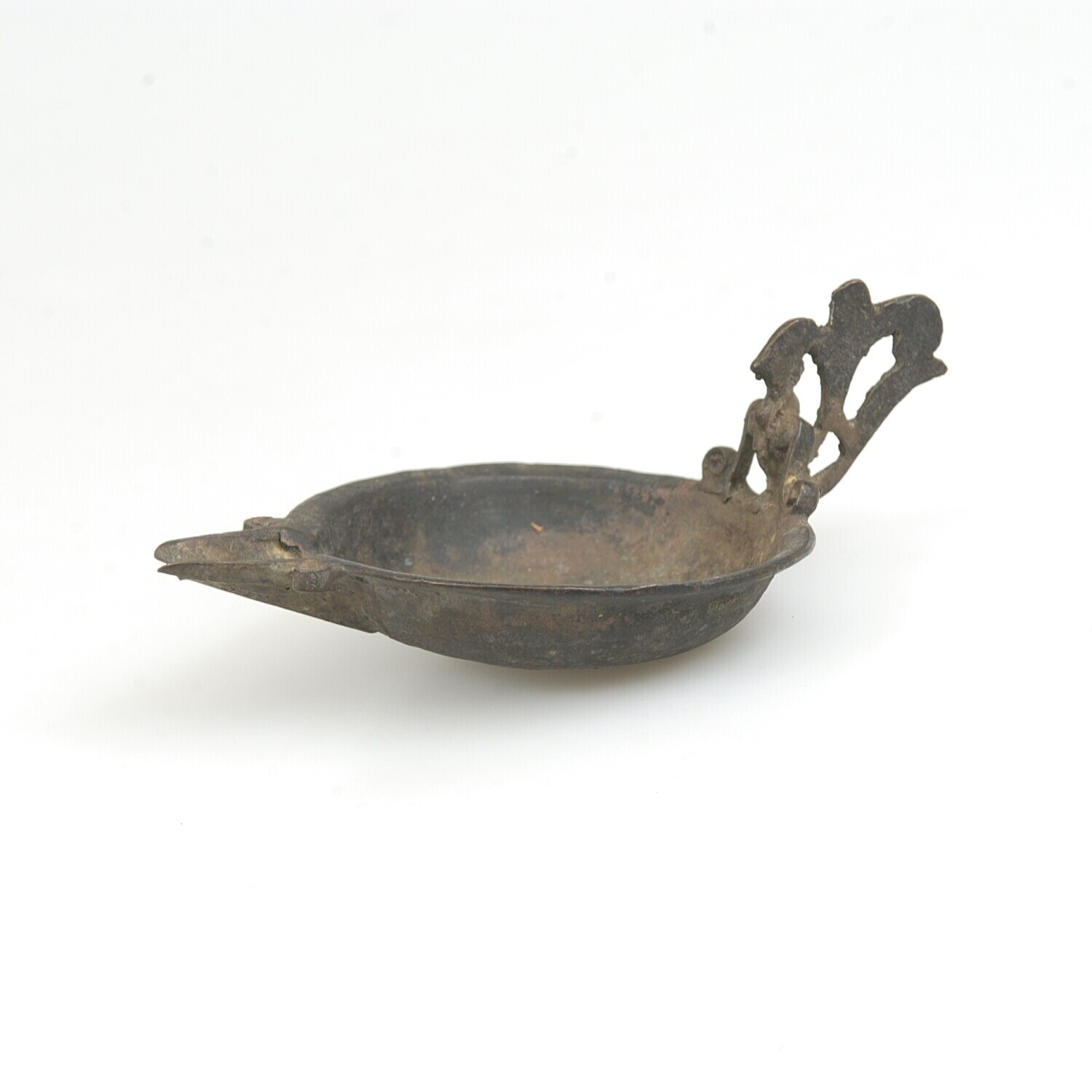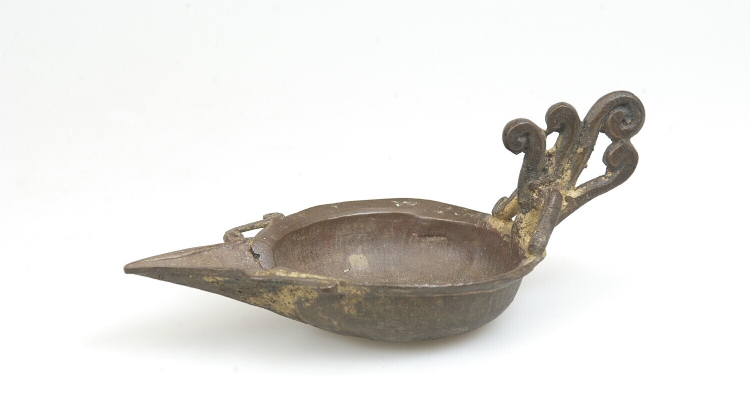 Sierstuk van een olielamp in de vorm van wijdbeens s...