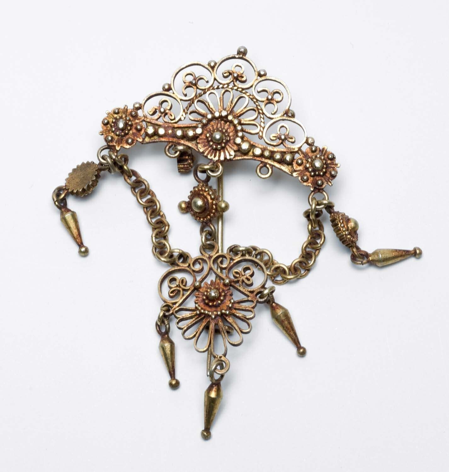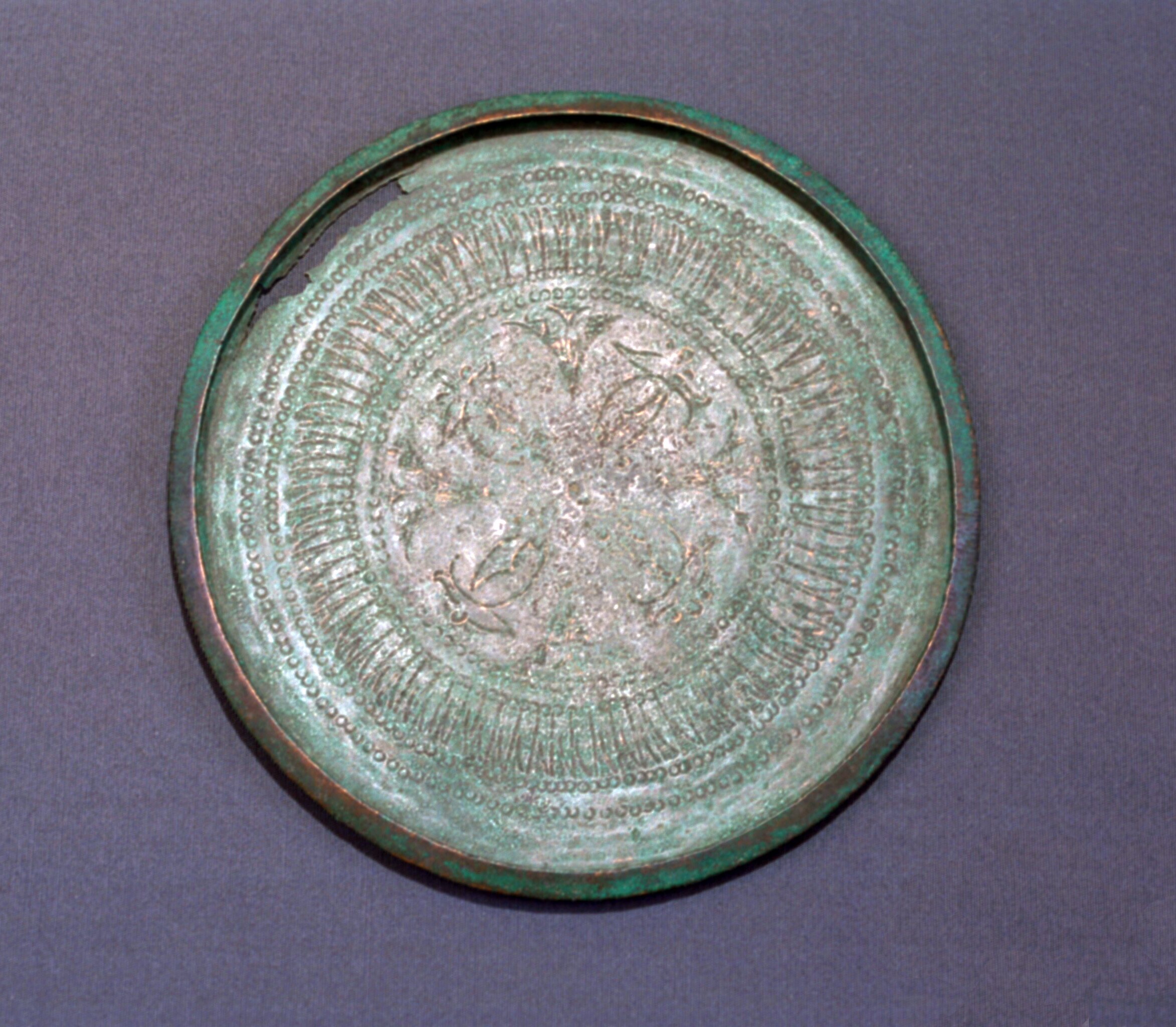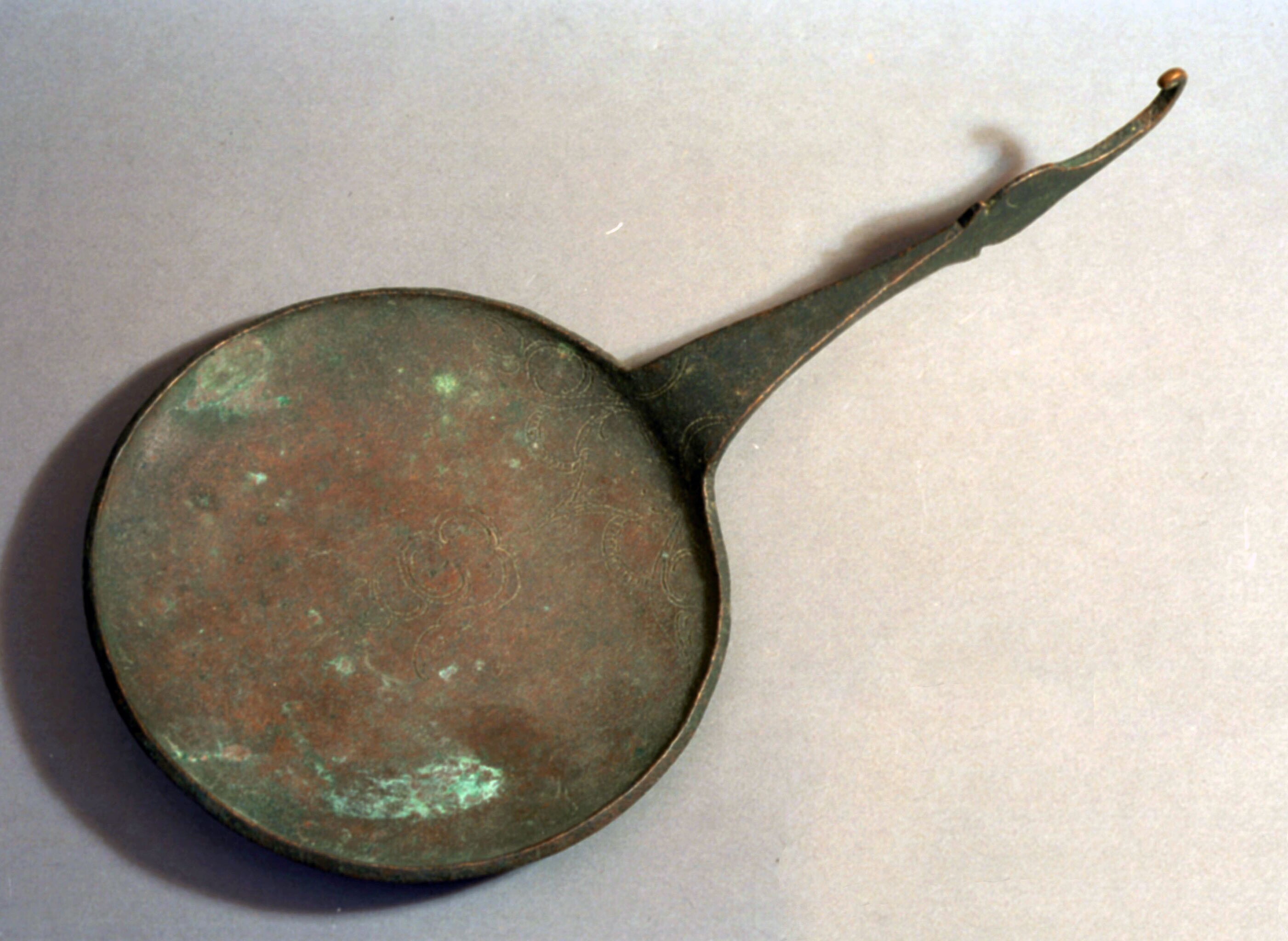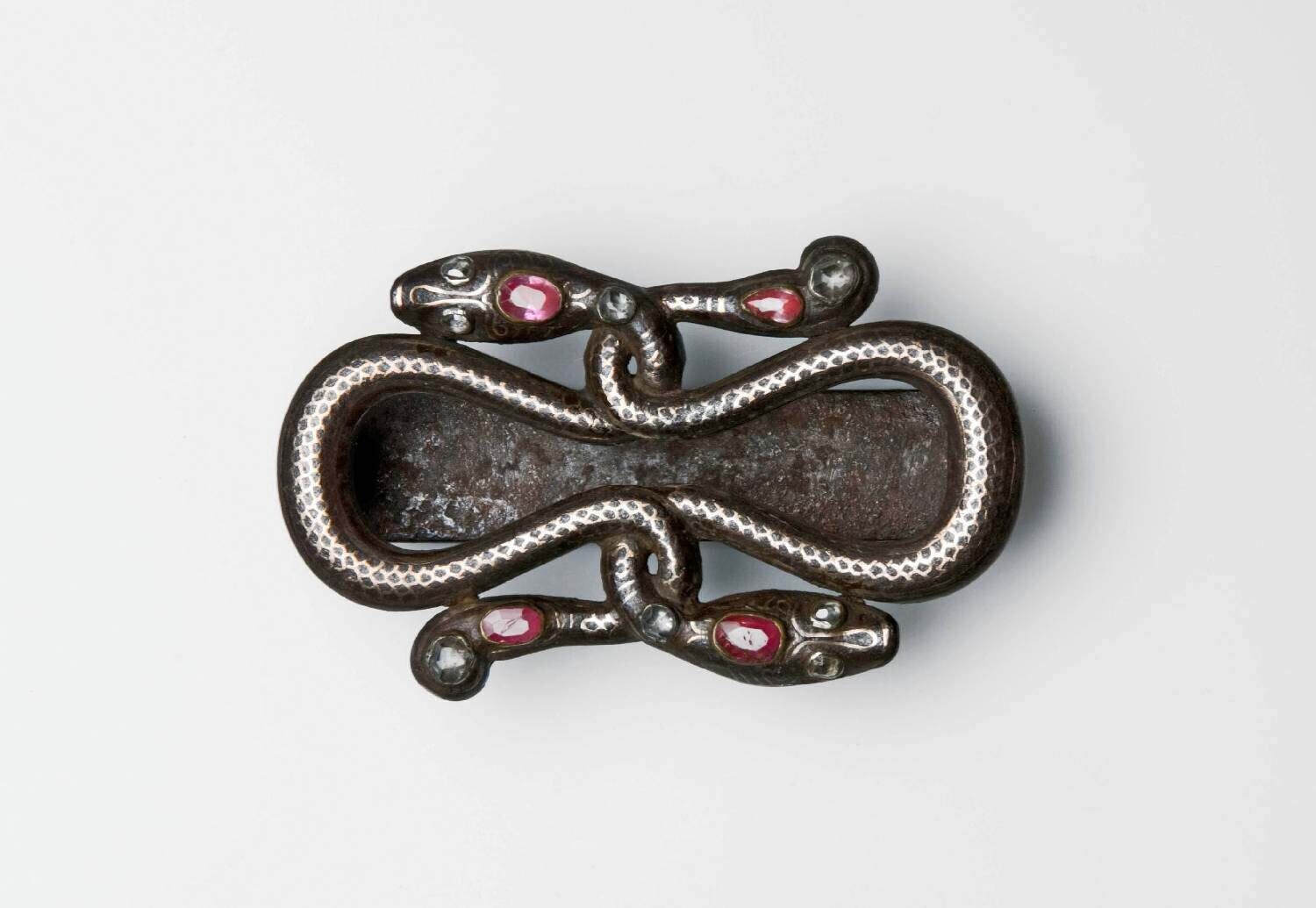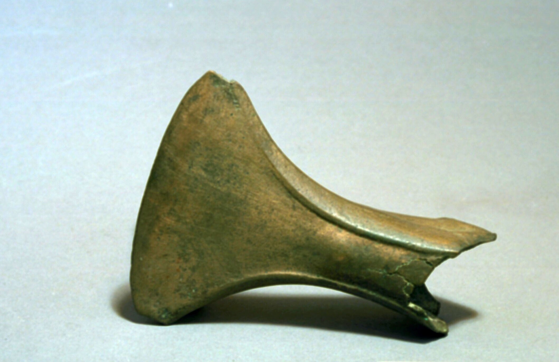 Sierstuk van een olielamp in de vorm van wijdbeens s...