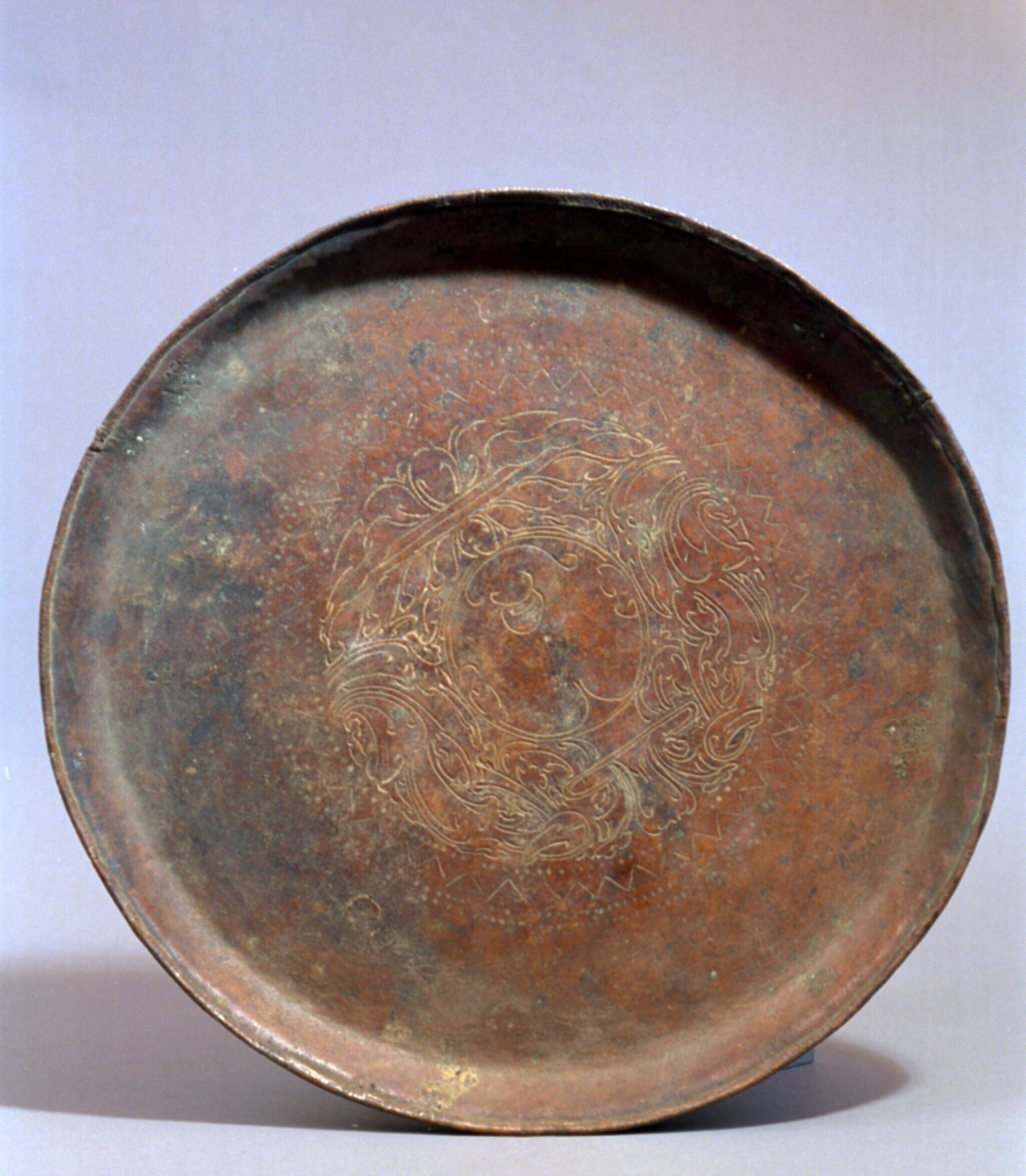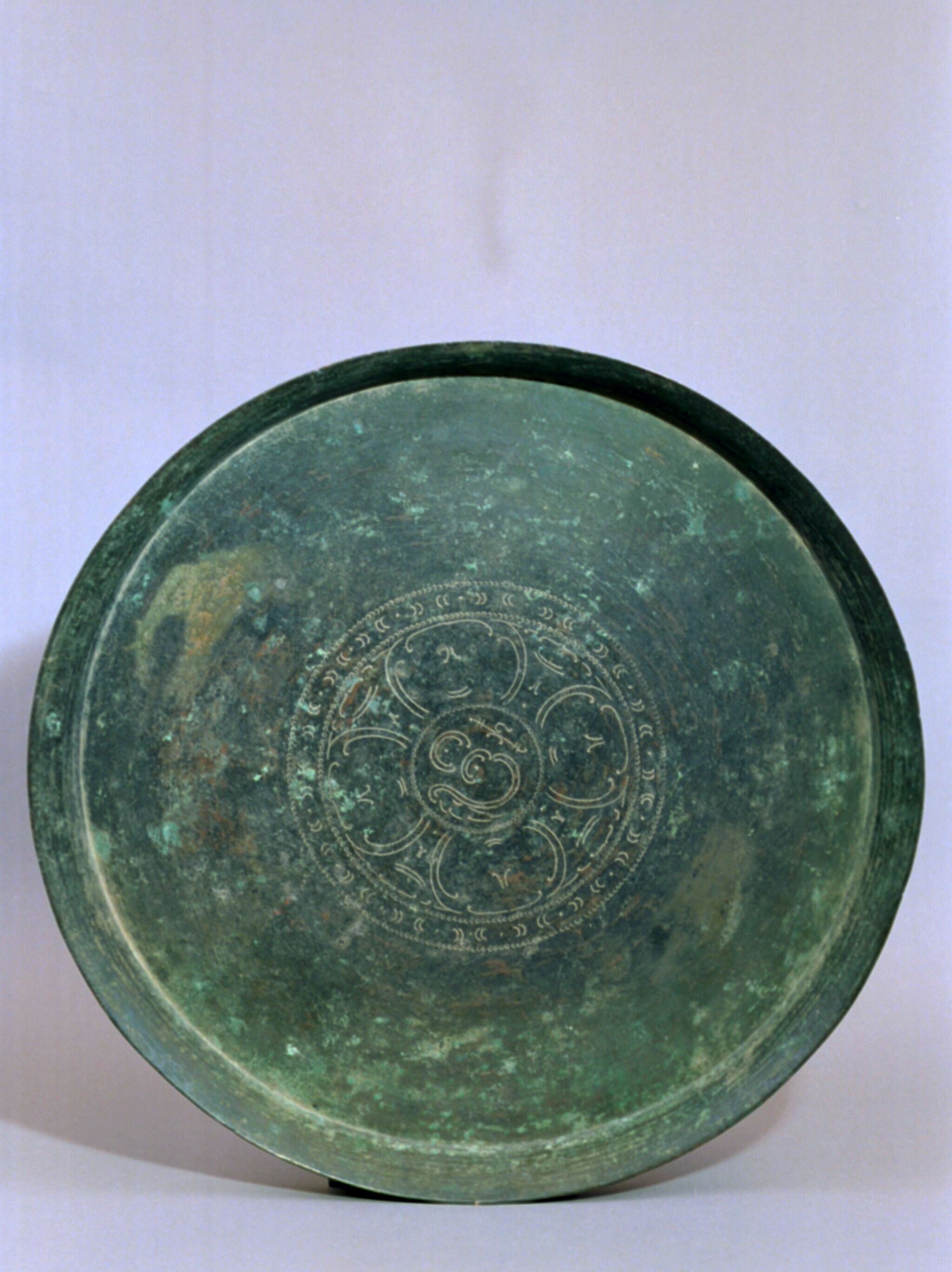 Bronzen schaal op voet voor het aanbieden van sirihp...