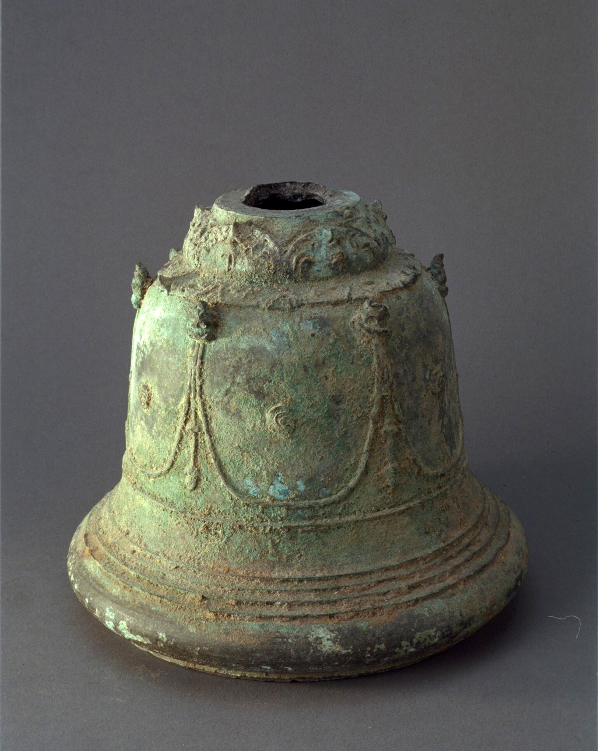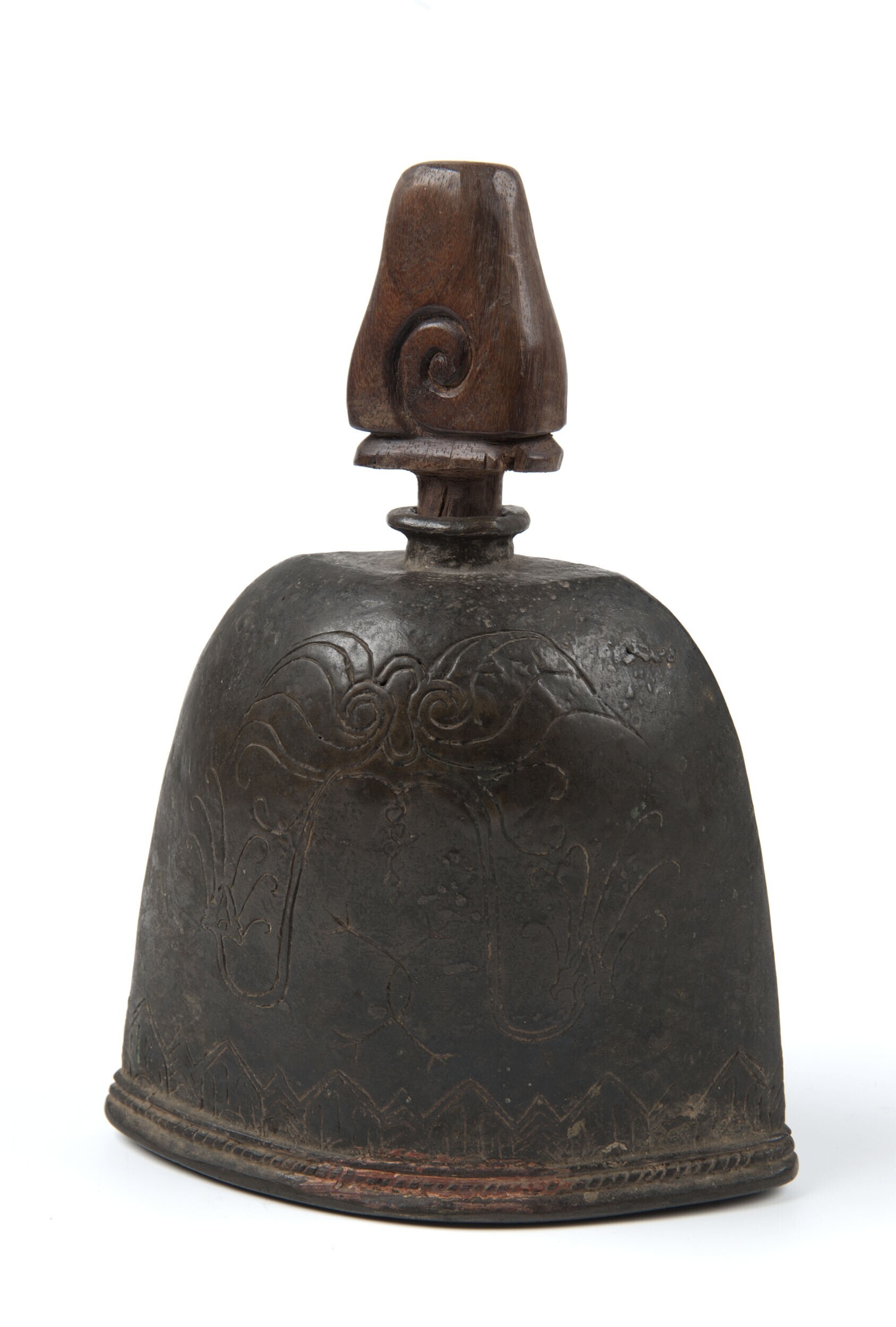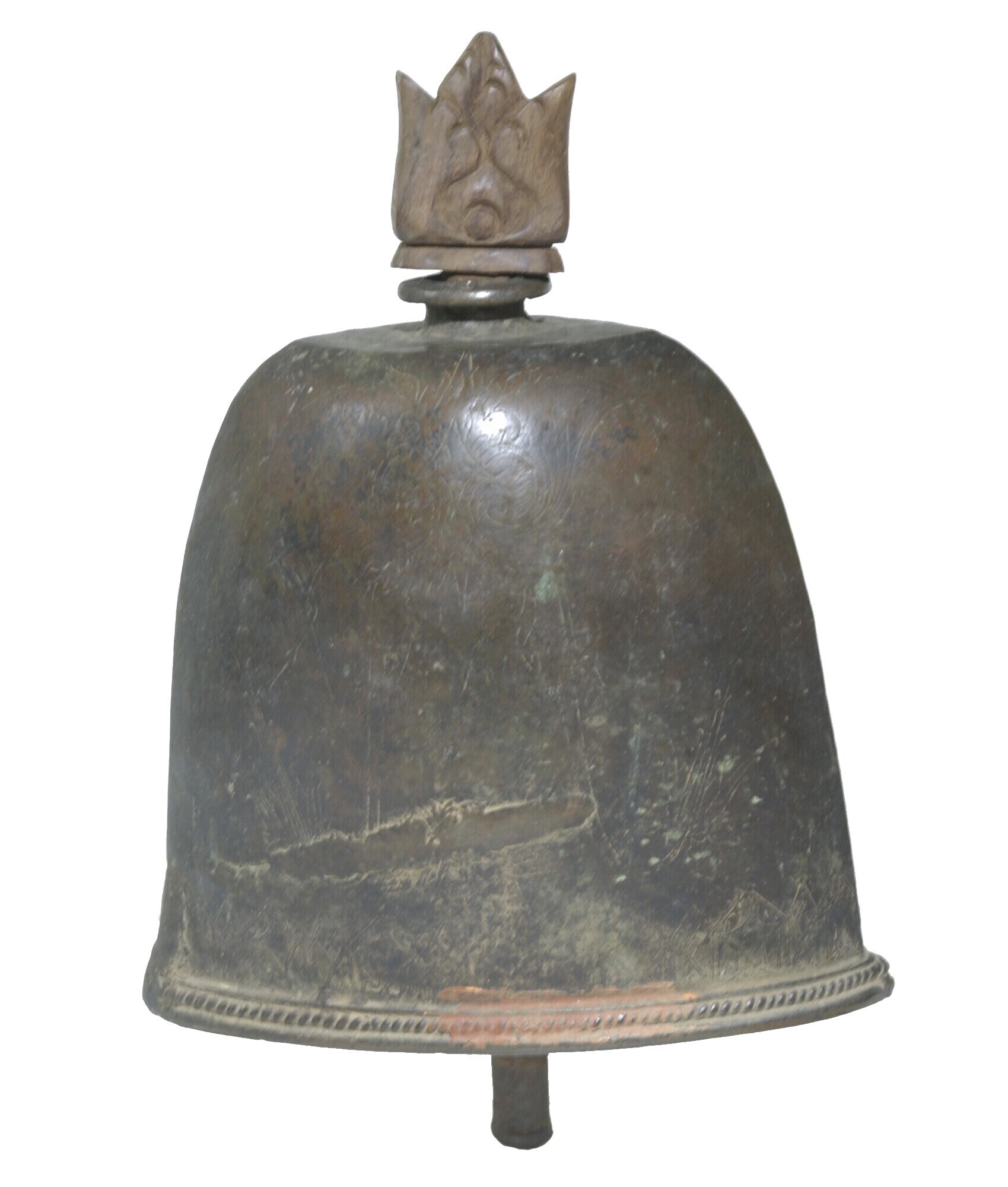Bronzen priesterbel met de hoofden van vier Dhyani B...