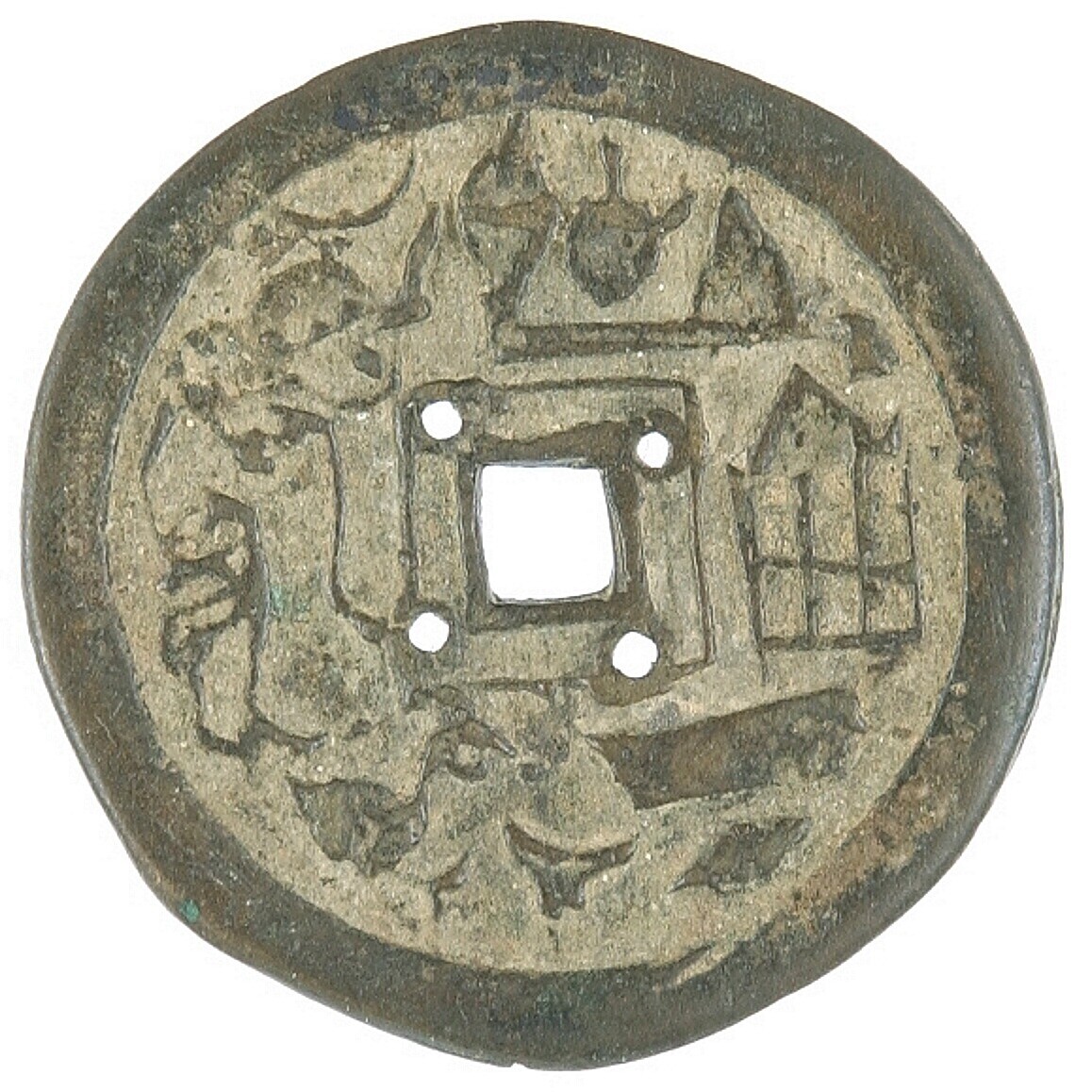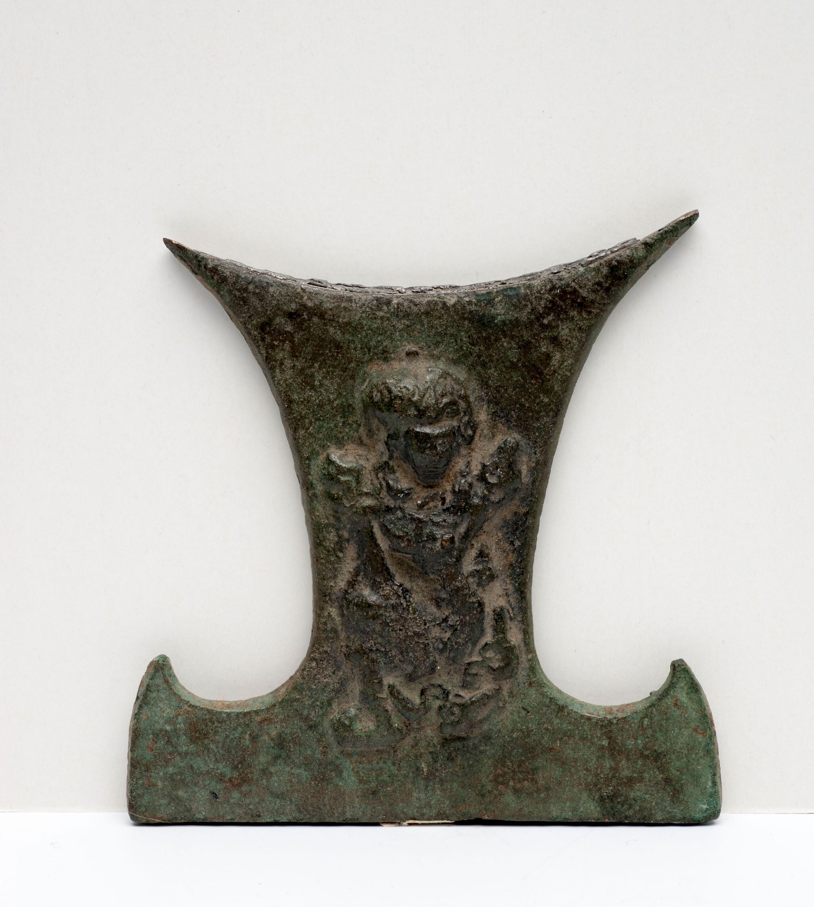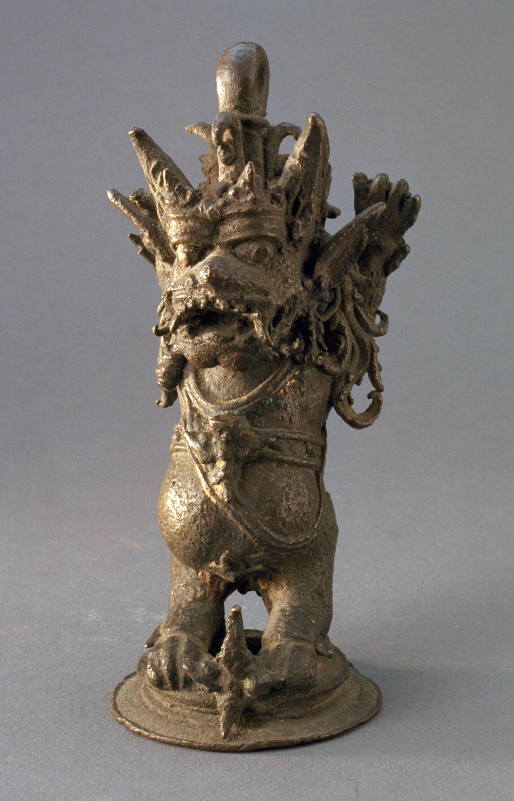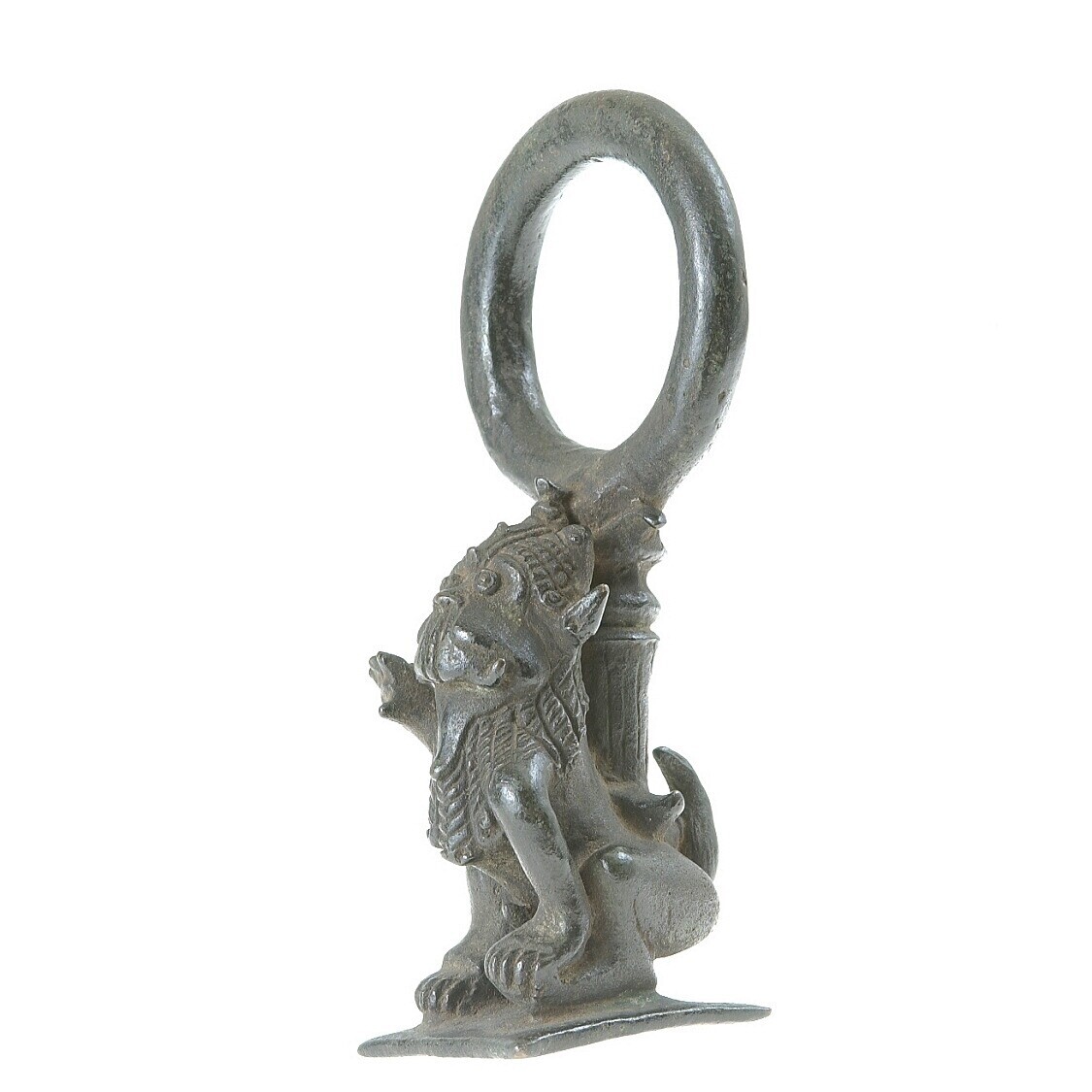 Bronzen topstuk van een rinkelstaf van een monik, to...