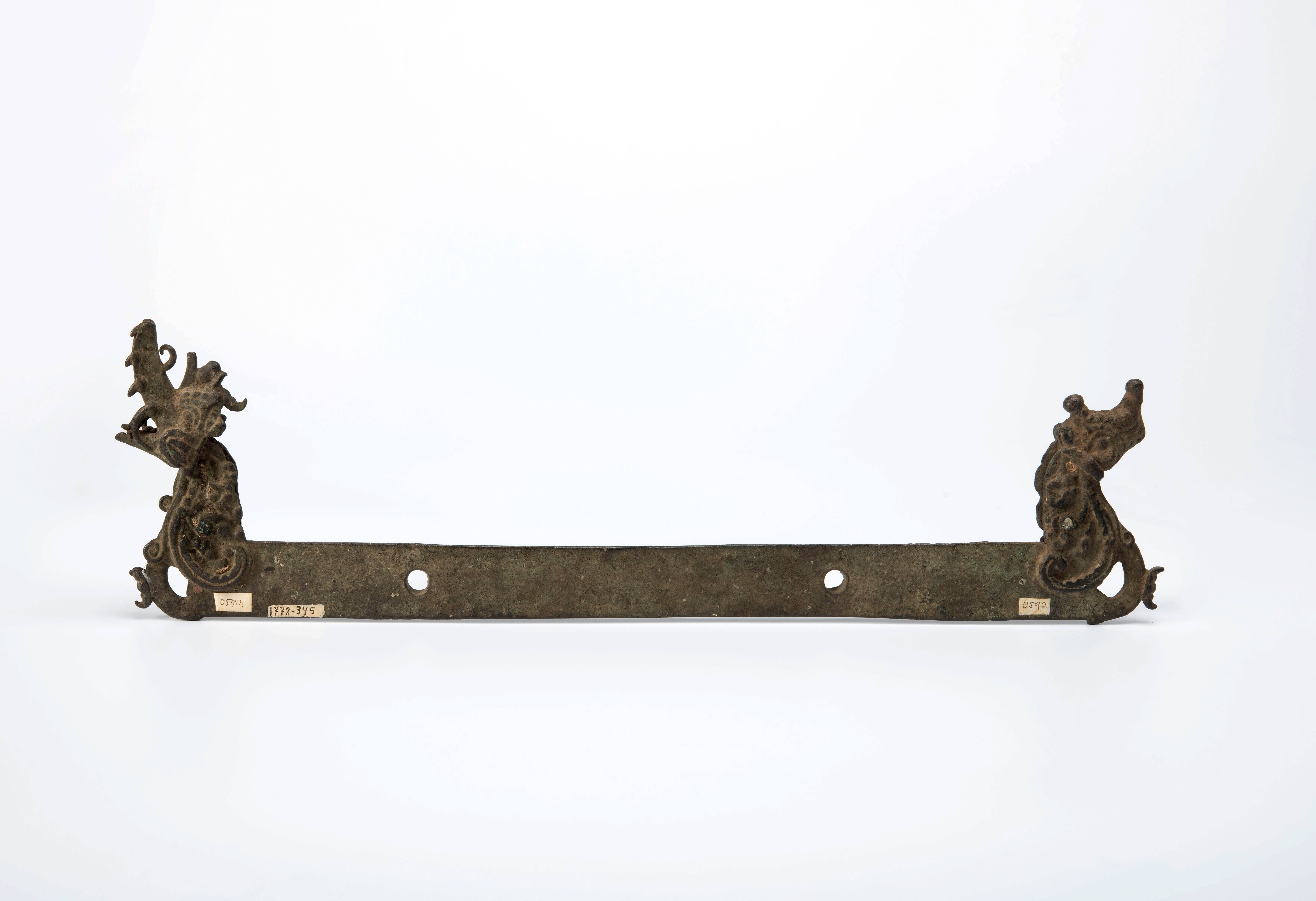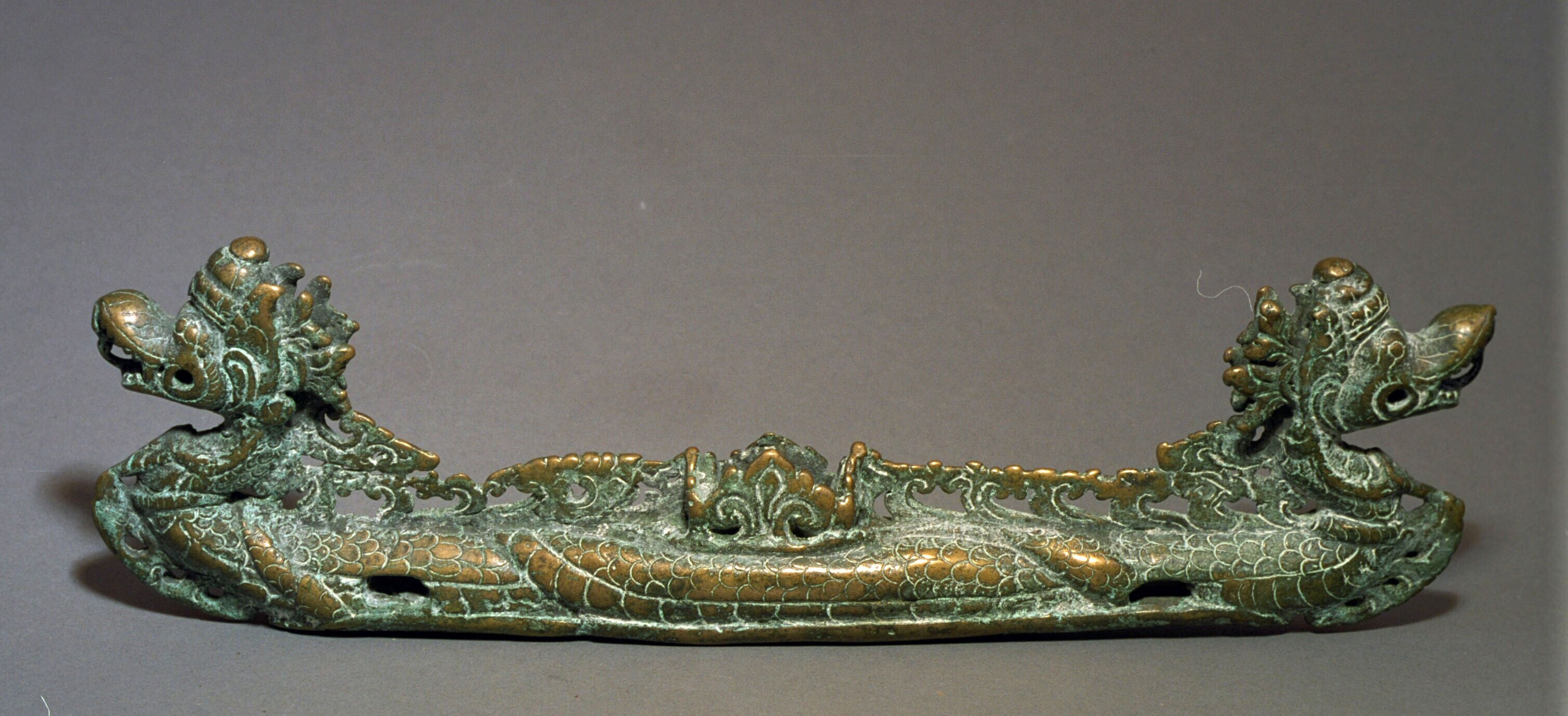 Zijstuk van een slaginstrument, de uiteinden versier...