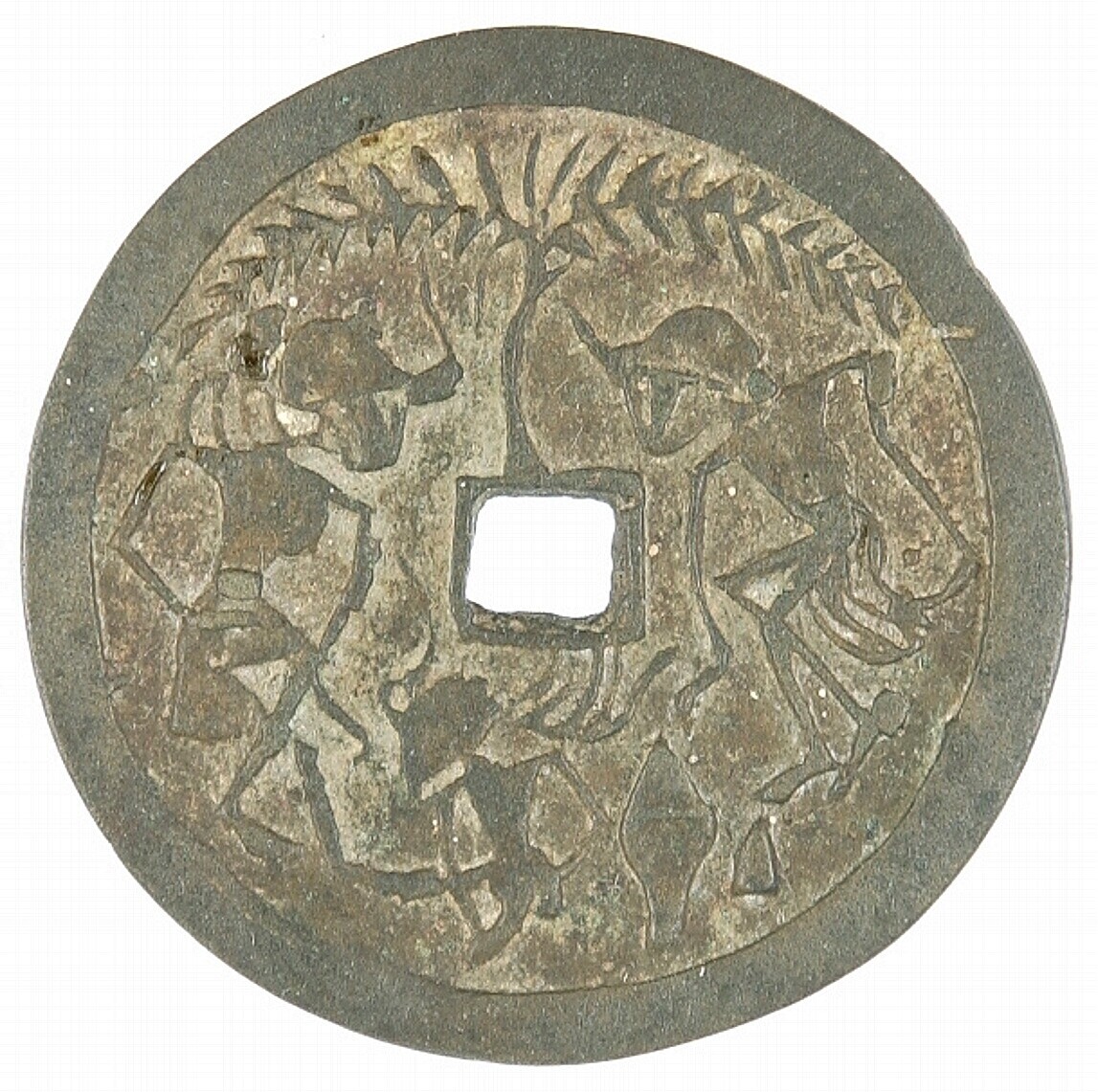 Bewerkt bronzen weegschaal, een nagakop aan het uite...