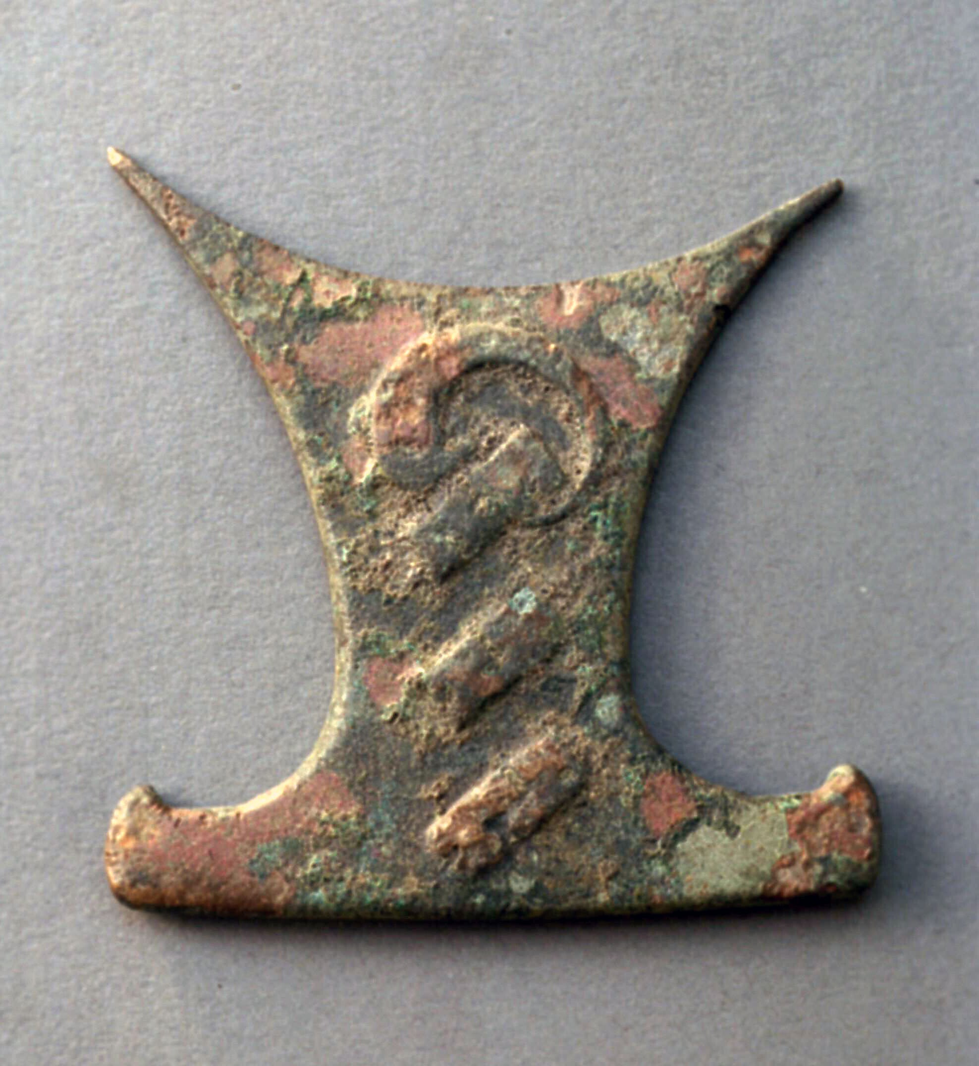 Zijstuk van een slaginstrument in de vorm van twee i...
