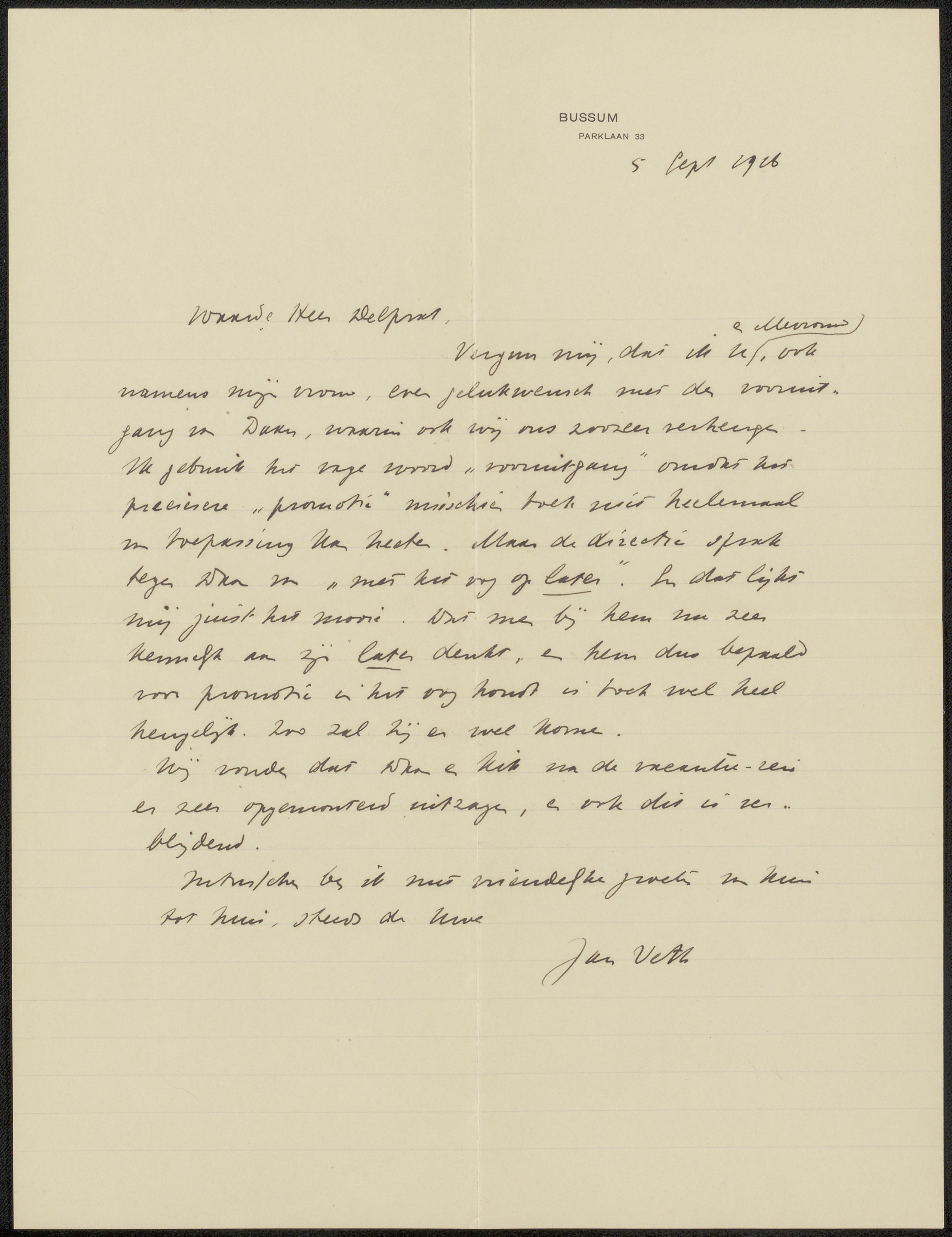 Conceptbrief aan Henri Pierre Leonard Wiessing