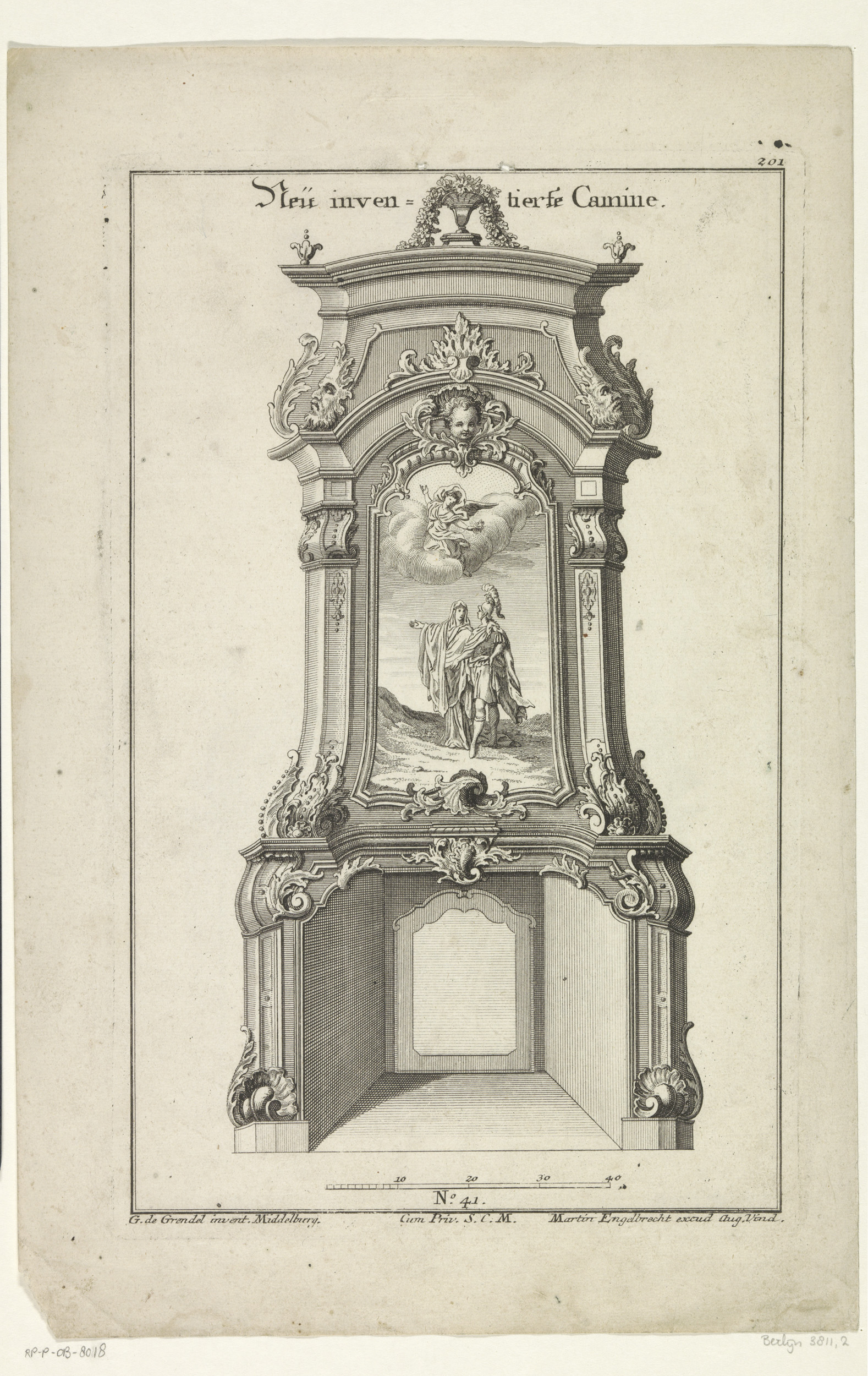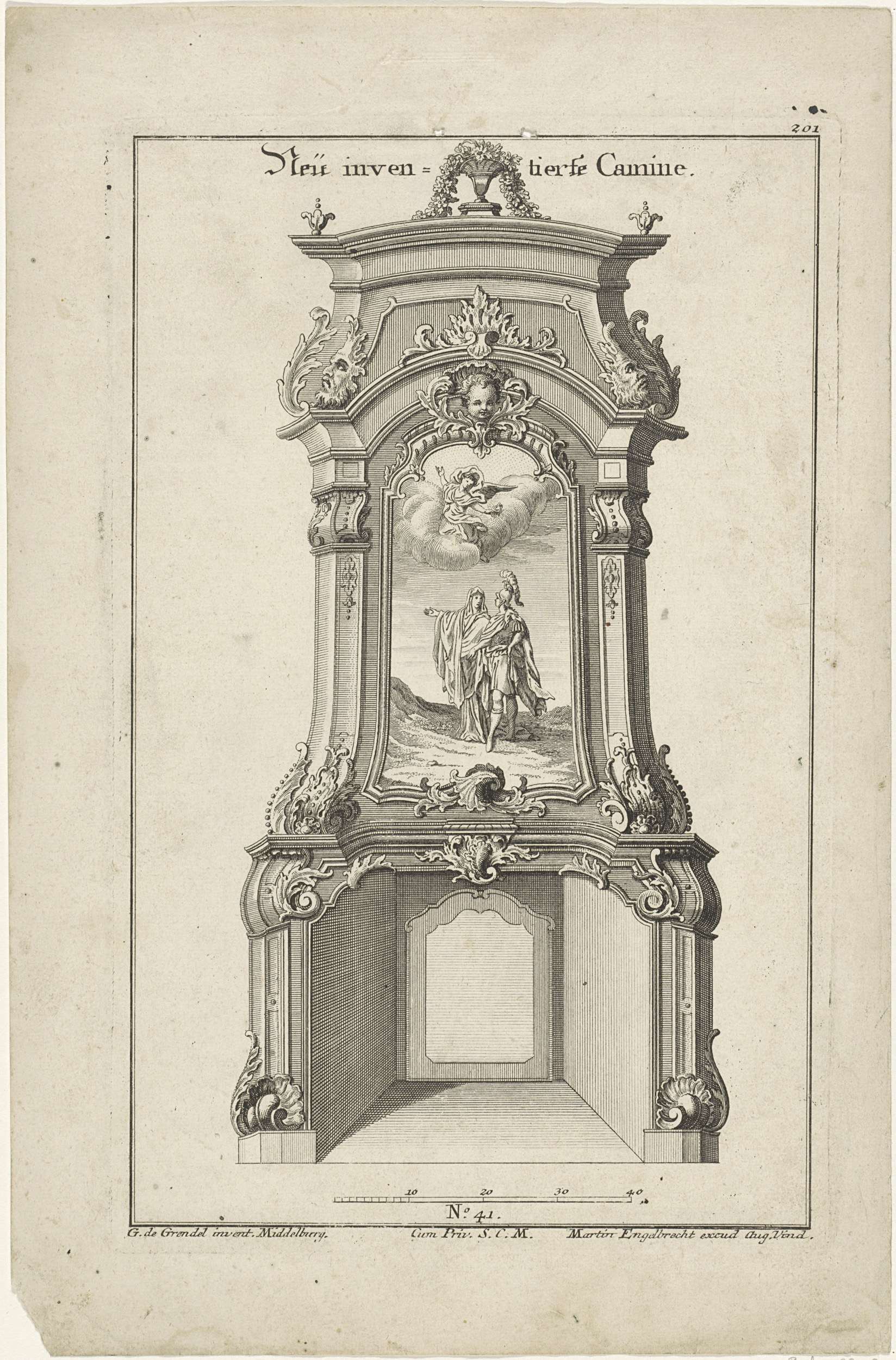 Ontwerp voor een schoorsteen met voorstelling van ee...