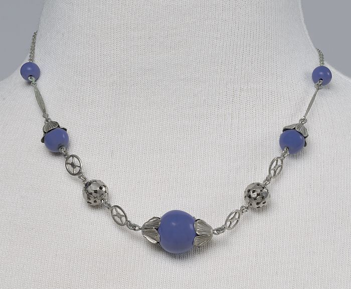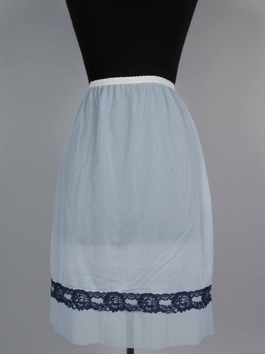 Lichtblauwe synthetische onderrok met rand van donke...