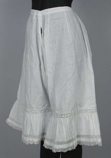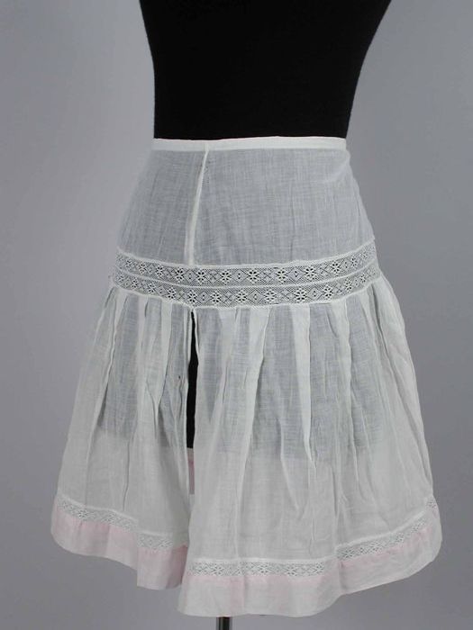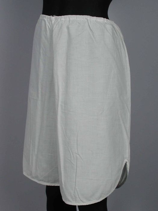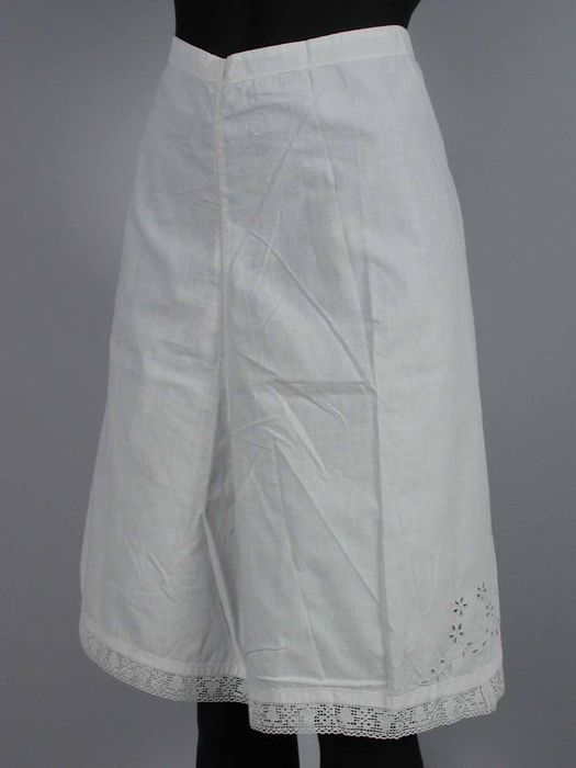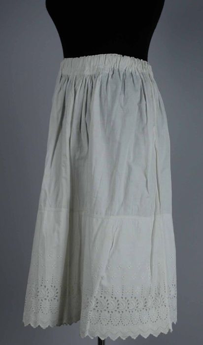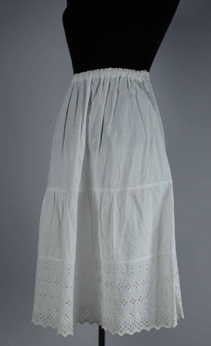 Halflange wijde onderrok van wit keperkatoen, geschu...