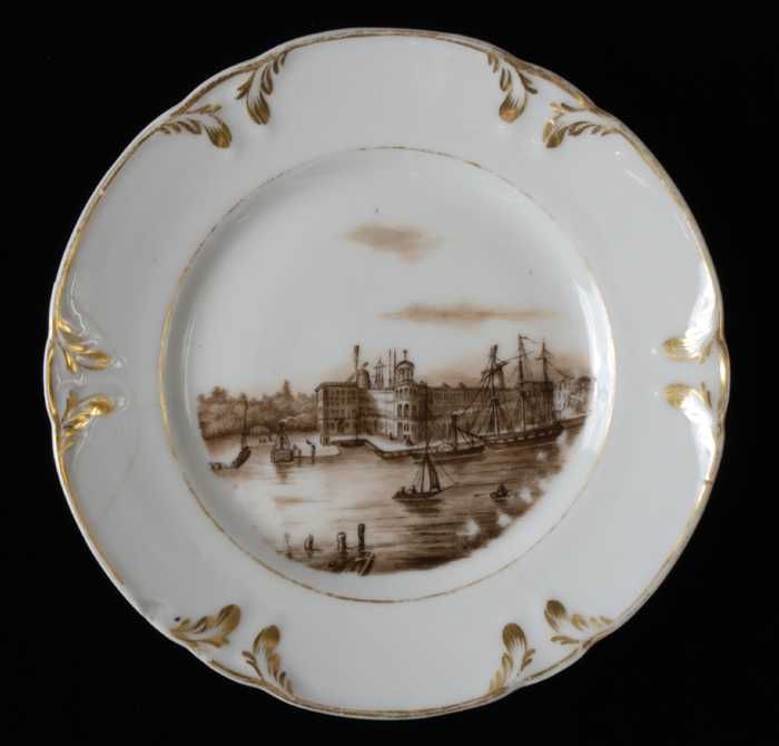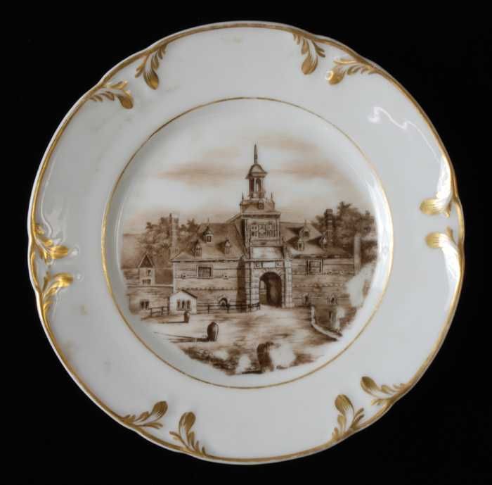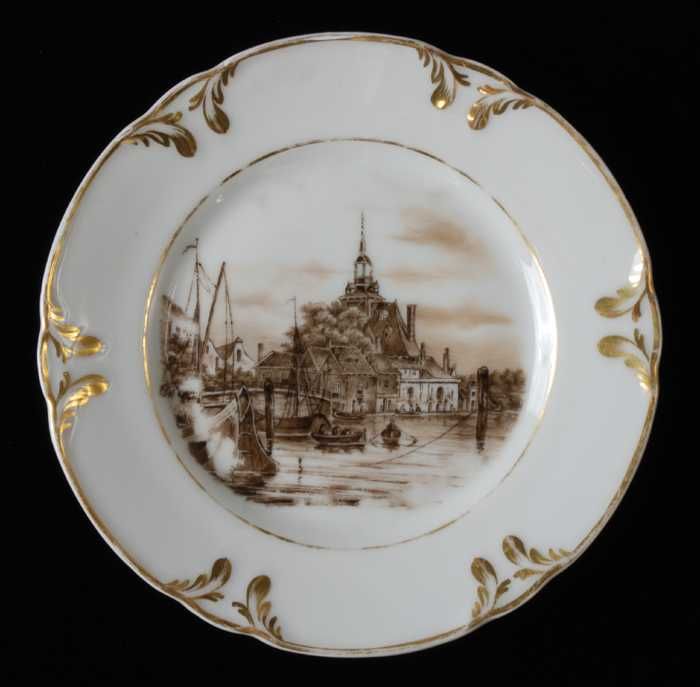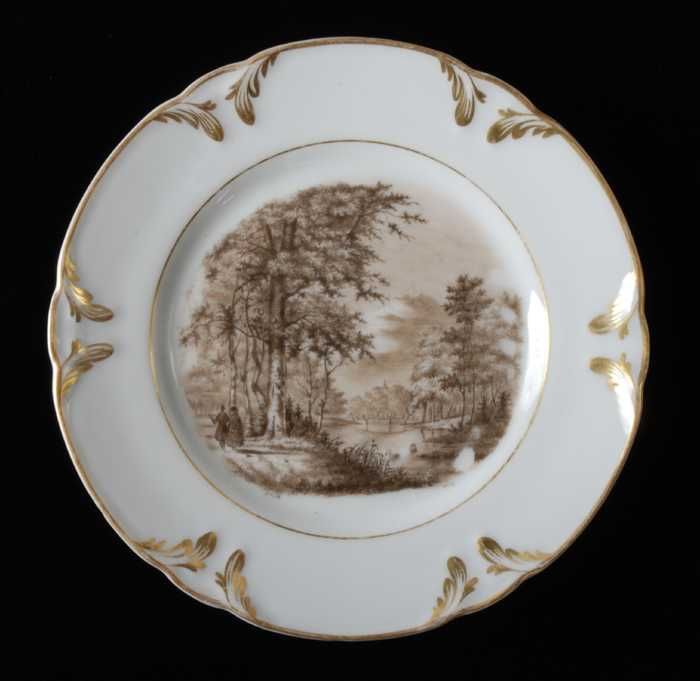 Wit bord met goudkleurig bladmotief langs rand en pa...