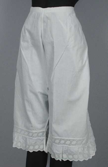 Witte onderbroek met pijpen afgezet met broderie
