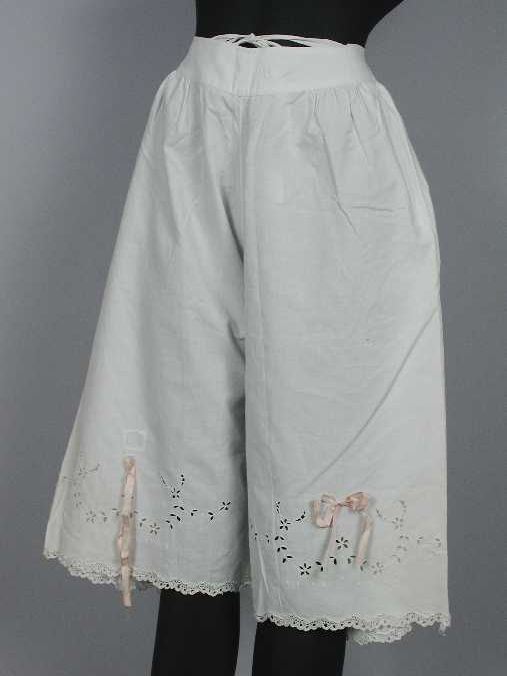 Witte onderbroek met pijpen, directoire met broderie...