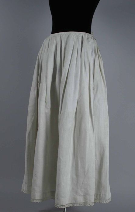 Lange wijde onderrok van dik wit katoen met ingeweve...