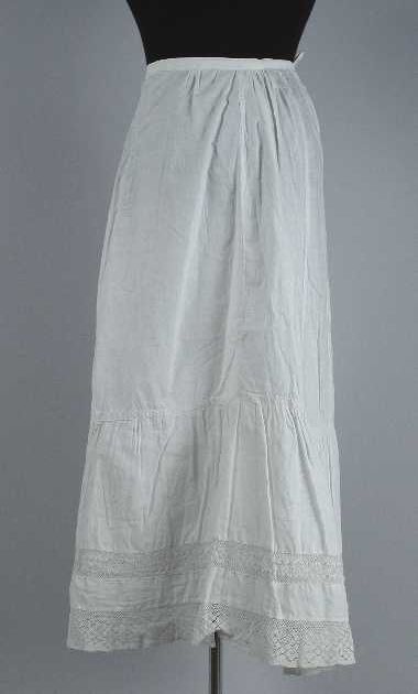 Halflange onderrok aan brede band, onderaan versierd...