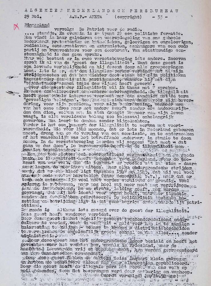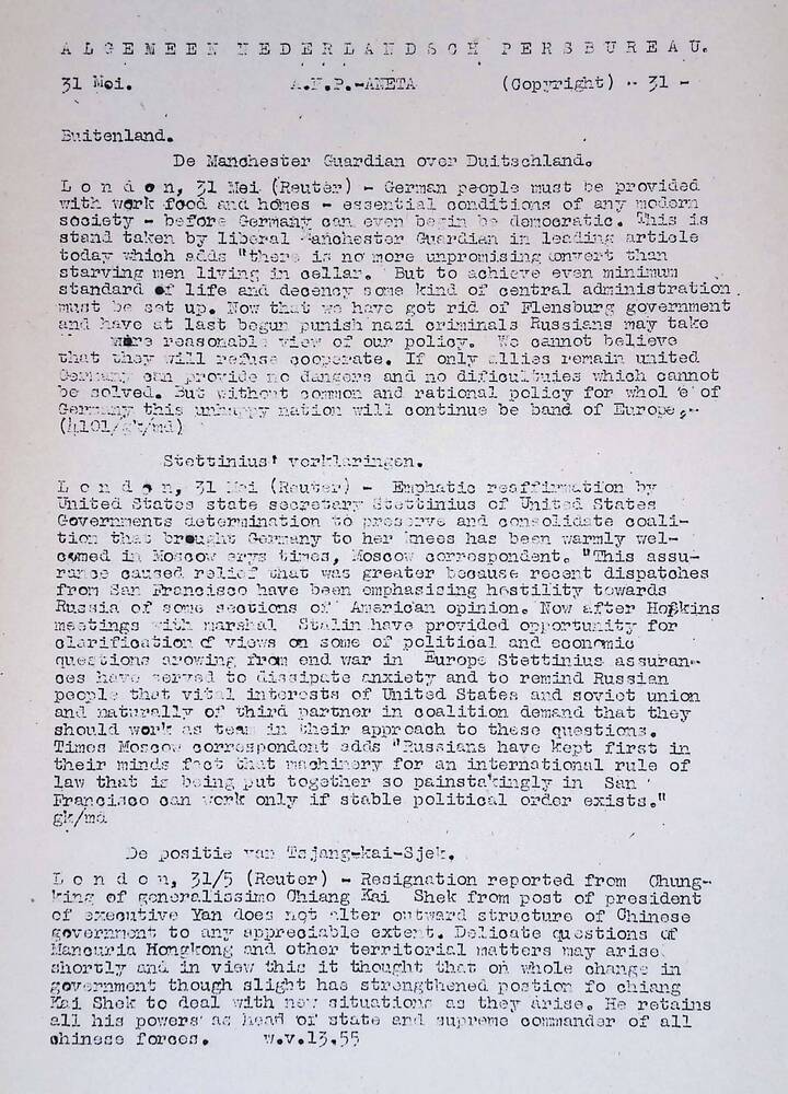 Algemeen Nederlandsch Persbureau, mededelingen, 31 m...