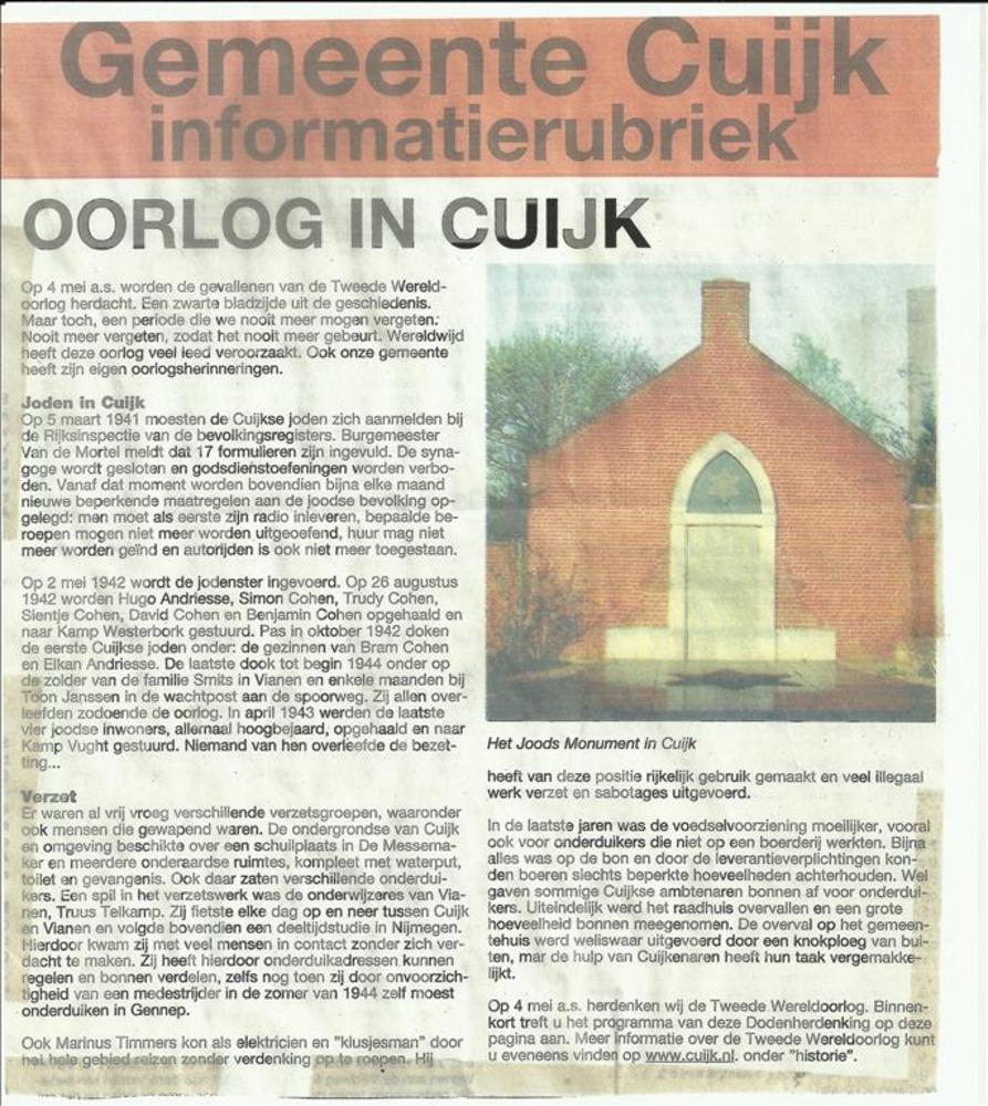 Gemeente Cuijk informatierubriek - oorlog in Cuijk