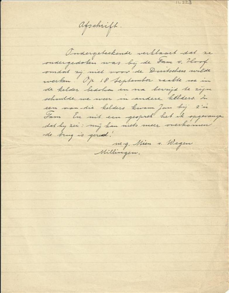 Afschrift verklaring onderduiker bij fam. van Hoof, ...