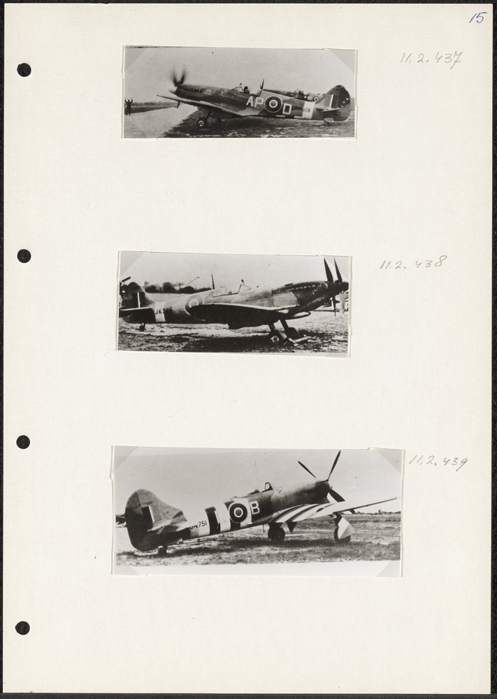Foto Hawker Tempest (regsitarie JN751) op de grond R B.