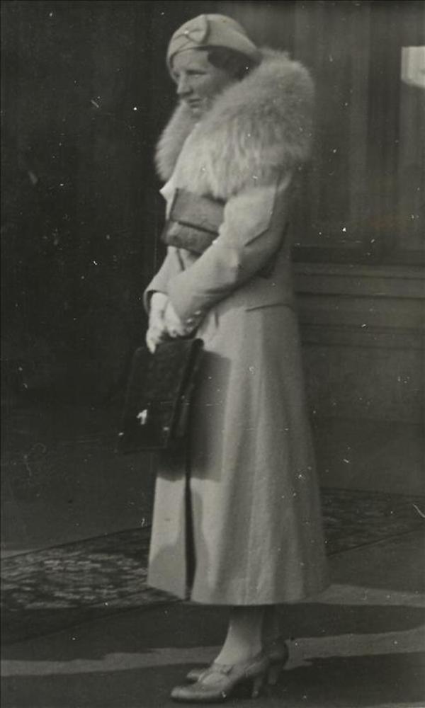Koninklijke Huis; Prinses Juliana in jas met bontkraag