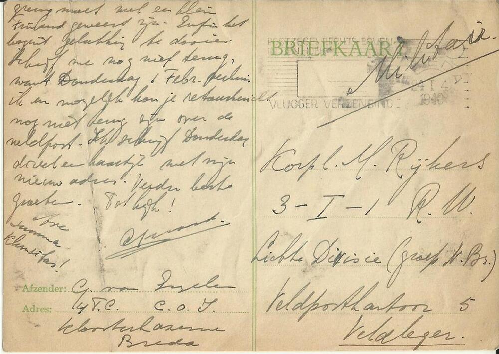 Briefkaarten aan de militair Martinus Adrianus Rijkers