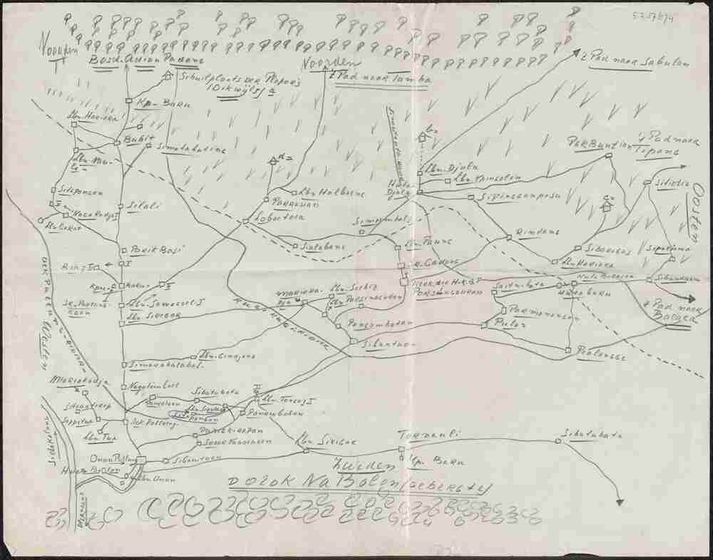 Handgetekende situatiekaart in de wijde omgeving Hut...