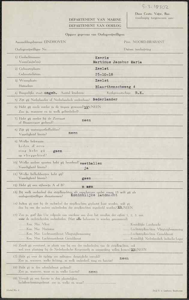 Aanmeldingsformulier oorlogsvrijwilliger Aanmeldings...