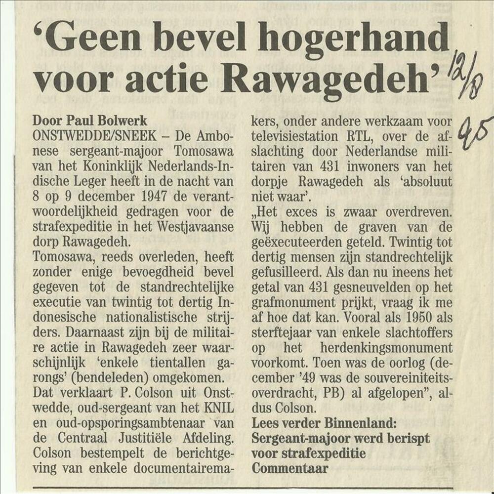Geen bevel hogerhand voor actie Rawagedeh