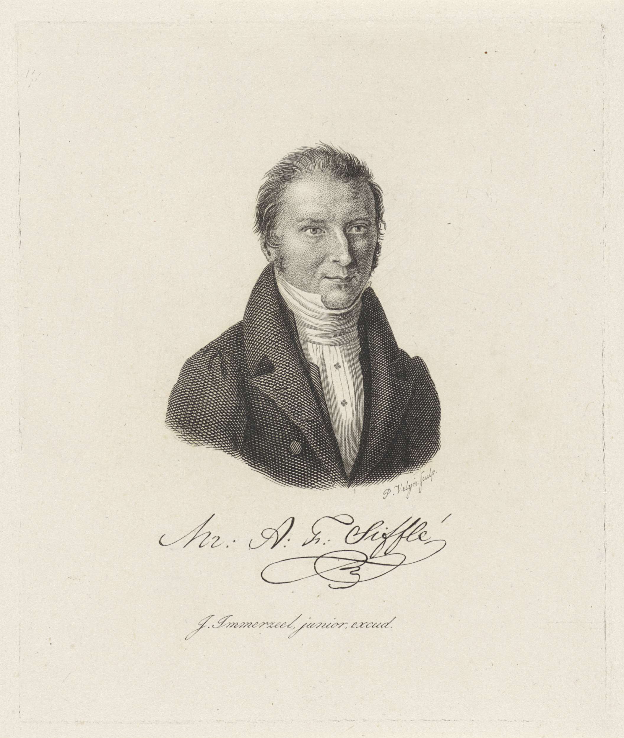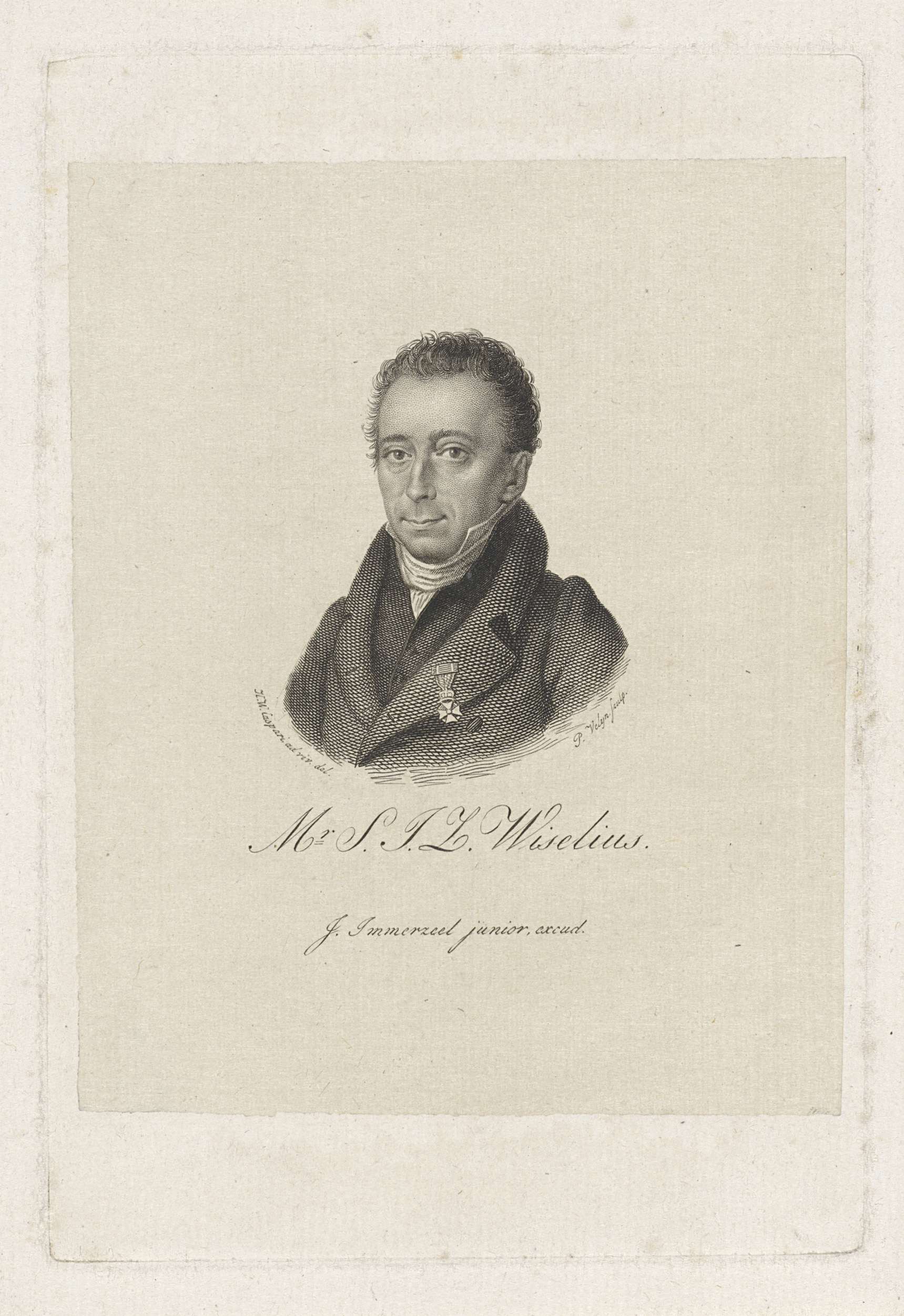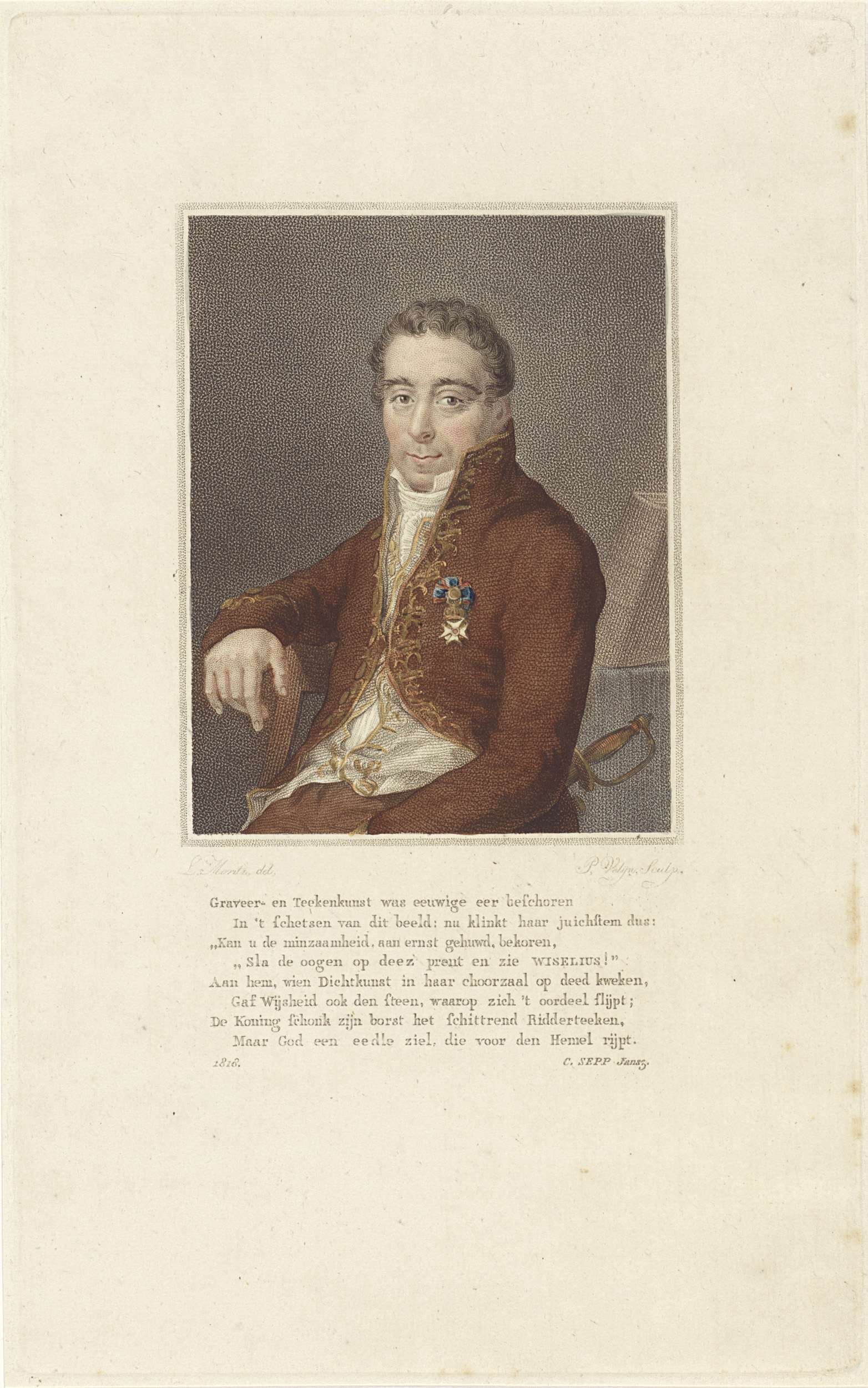 Portret van Samuel Iperuszoon Wiselius zittend op ee...