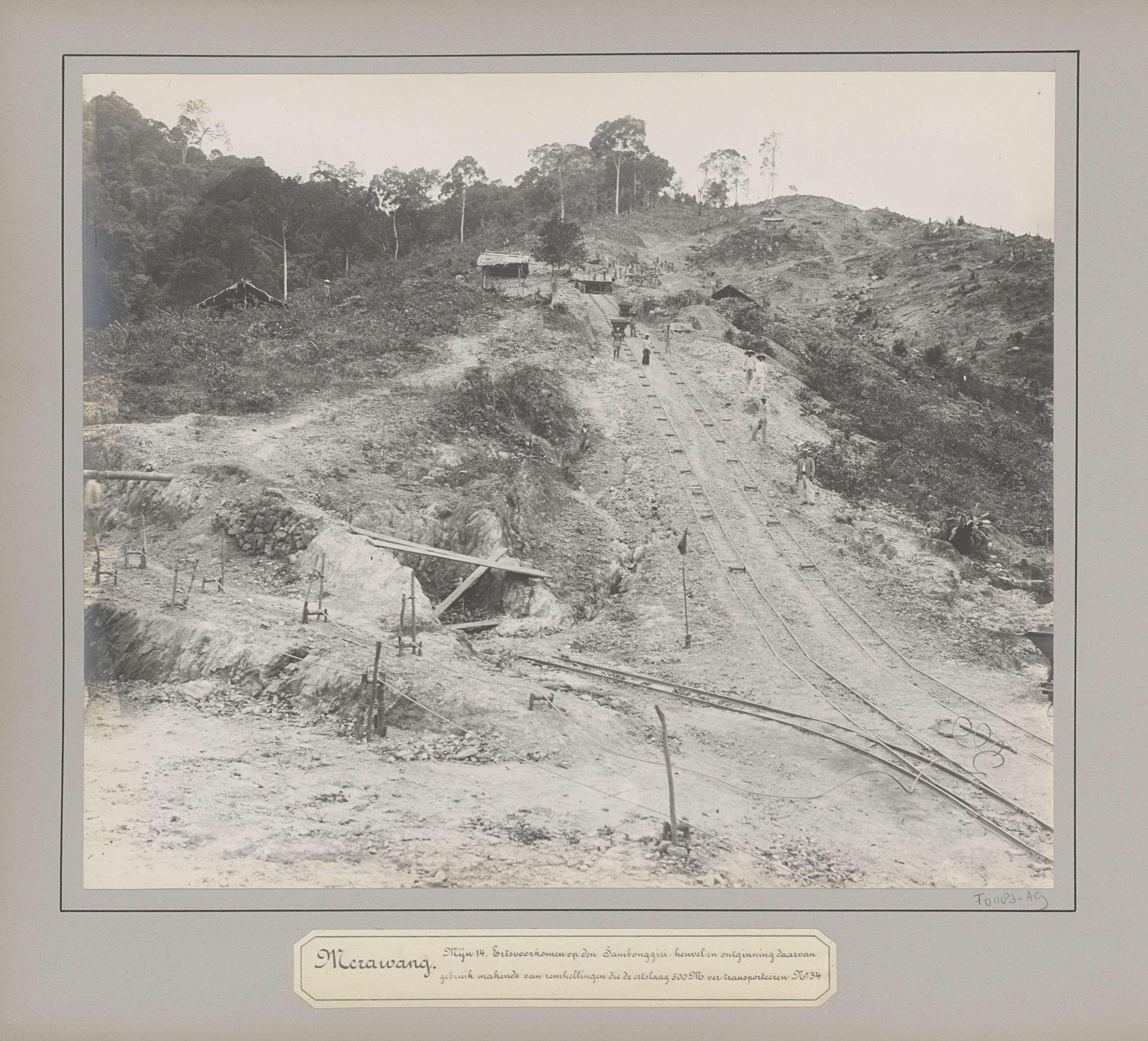 Helling met spoorbanen op een tinonderneming te Mera...