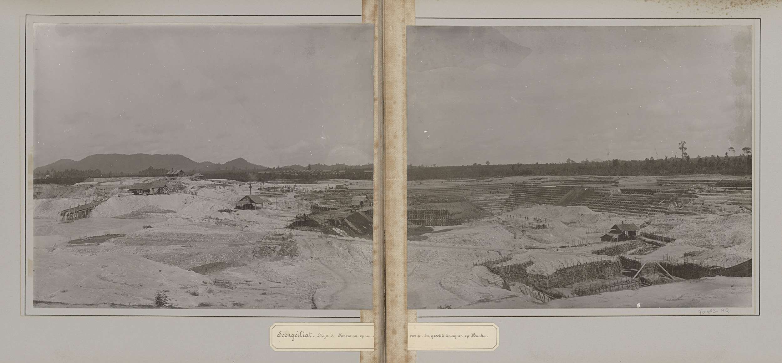 Gezicht op een tinmijn te Soengeiliat